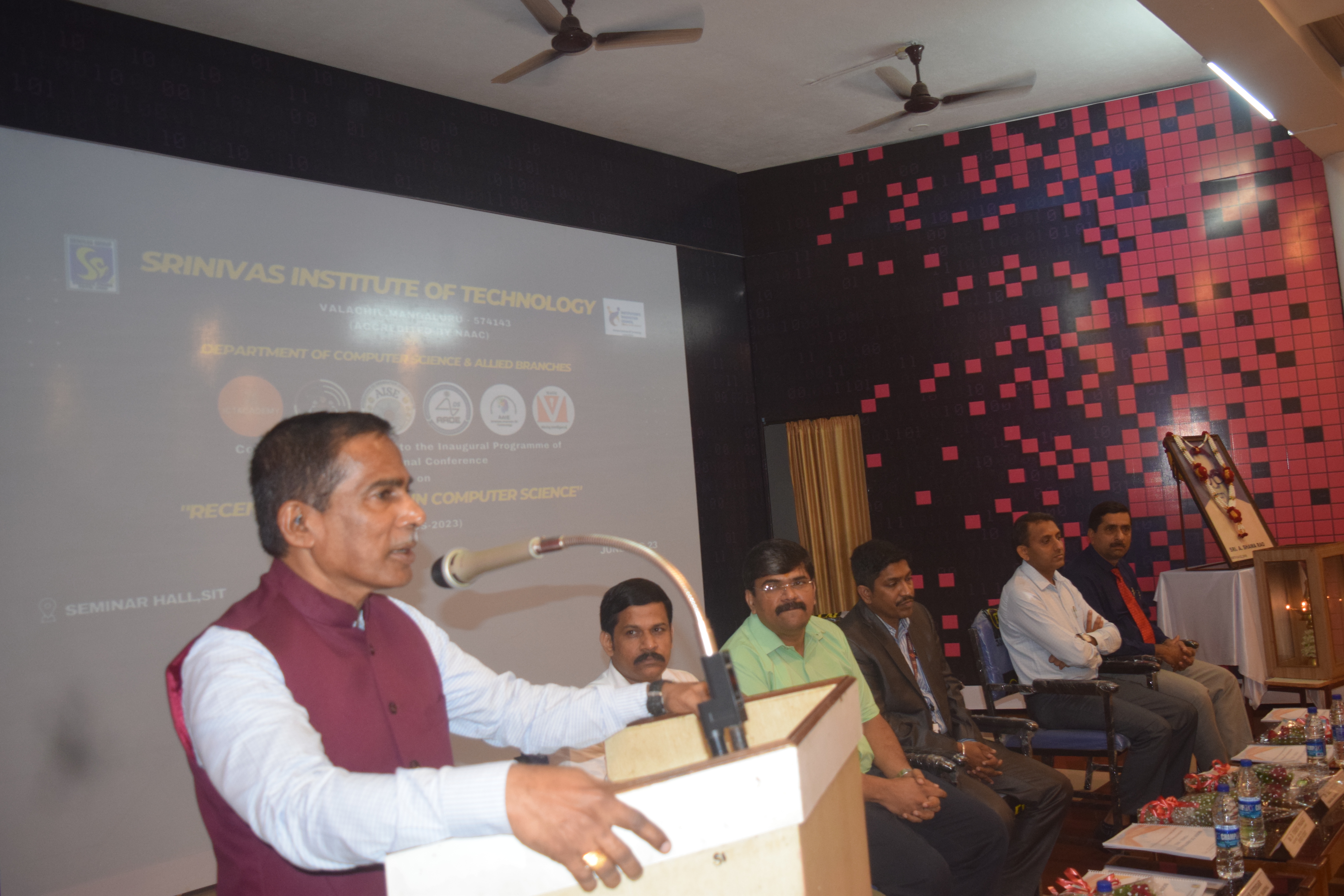 An International Conference on “Recent Innovations in Computer Science”- (ICRICS-2023)” was organized by the Departments of Computer Science & Engineering,allied branches and Master of Computer Applications on June 22nd and 23rd 2023 at Srinivas Institute of Technology, Valachil Mangaluru. Mr. D Vishnu Prasad, State Head Karnataka, ICT Academy was the Chief Guest of this conference. Speaking on the occassion, Mr. D Vishnu Prasad urged the participants to work collaboratively and to develop their technical skills with new and innovative ideas that would be benificial for the society.Dr. Shrinivasa Mayya D, Patron and Principal of the college, in his inaugural address, said that this conference drives in a special opportunity to bring together professors, researchers, and scholars around the globe, and serves as a platform to deliver innovative research results and the latest trends and development in the fields of Computer Science and allied branches. He also insisted that constant updation of technical knowledge in new research areas is necessary for the academic growth of oneself.The release of the book of all the abstarcts of the conference papers was done by the chief guest.The conference overview was briefed by Prof. Ravishankara K, Convener & H.O.D, Department of CS&E. The welcome speech was delivered by Dr. Shashidhar Kini, H.O.D, Department of MCA.The vote of thanks was rendered by Prof. Sudarshan K, H.O.D, Department of IS&E. Dr. Padmanayana, and Prof. Spoorthi compered the entire program.The formal function was followed by the key note addresses by eminent speakers Dr. Ragavendra U, Deputy Registrar, MAHE on the topic Impact of AI on Healthcare Delivery and Dr. Anjan Gudigar, Assistant Director-Academics, MIT, Manipal on the topic Current Trends in AI Techniques.More than 100 research papers, survey papers covering various domains related to computer science and AI were presented during the conference in hybrid mode.