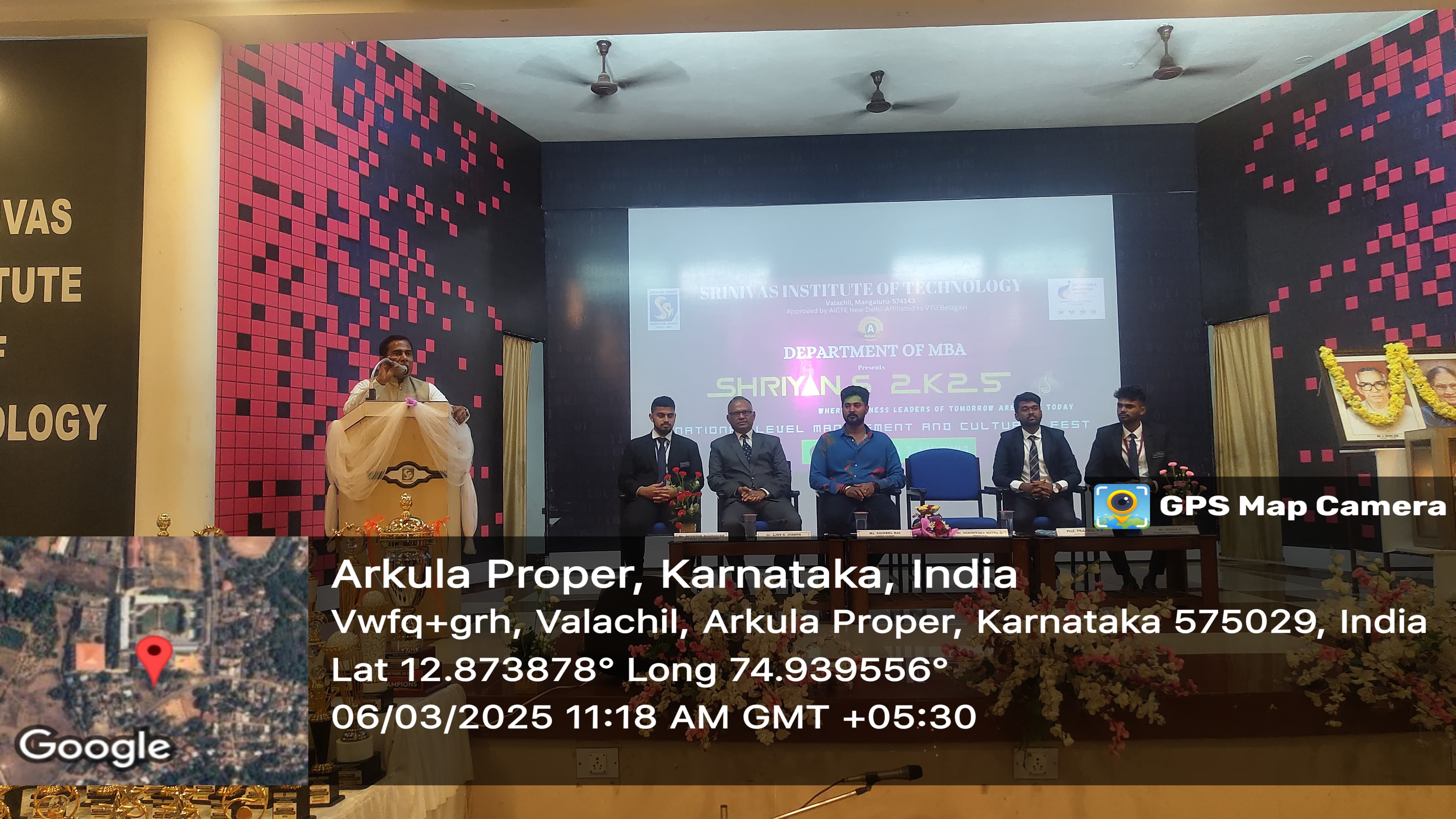 Mangaluru, March 6-7, 2025: The **MBA Department of Srinivas Institute of Technology, Valachil** hosted the highly anticipated **National Level Management and Cultural Fest – Shriyans-2K25** on **March 6th and 7th, 2025**. ### 🏛 Event Highlights ✔ **Inauguration by Mr. Saiheel Rai**: A well-known **Host, Actor, Entrepreneur, and Managing Director of Sai Productions**, who shared insights on **management skills** essential for future leaders. ✔ **Inspirational Address**: He encouraged students to participate in such events and provided **live examples of success stories** to motivate the youth. ✔ **Traditional Lamp Lighting Ceremony**: The dignitaries and participants marked the commencement of the fest with a formal **lamp lighting ceremony**. ### 🎤 Dignitaries Present ✔ **Dr. Shrinivasa Mayya D**, Principal, presided over the function and **motivated students** to excel in all activities. ✔ **Dr. Ajoy S Joseph**, Head of MBA Department. ✔ **Prof. Prajwal B K**, Staff Coordinator. ✔ **Mr. Suhas H & Mr. Royston Xavier Rodrigues**, Student Coordinators. ### 🎭 Master of Ceremony ✔ **Miss Deeksha & Miss Sherly Seedarla** expertly hosted the event, ensuring smooth proceedings. The fest provided an **exciting platform** for students to **showcase their management and cultural skills**, fostering **teamwork, creativity, and leadership**. #Shriyans2K25 #MBAFest #SITMangaluru #ManagementSkills #CulturalFest #Leadership