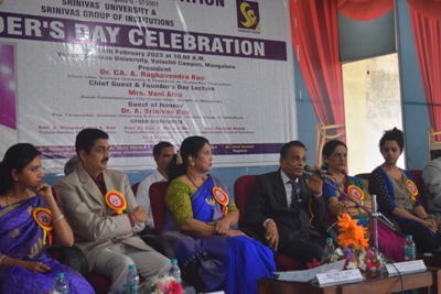 Mangalore:Srinivas University and Srinivas Group of Institutions celebratedfounders’ day at the Valachil campus of Srinivas University on Tuesday, February 14, 2023.Addressing the gathering, The Chief guest Zonal commissioner, City corporation Surathkal Vani V Alva said,a proper foundation is needed for development and Srinivasa Institution is providing it. Education plays a big role in social development. In his presidential remarks, Chancellor Srinivas University Dr CA A Raghavendra Rao said, Education is all about life experience. For a better future, choose the right course, achieve your goal with more effort, and become a role model in society. A Shama Rao Foundation recognises the contribution of Teachers at High School and PU College levels in the undivided Dakshina Kannada district. The foundation has selected Prathim Kumar K.S. (Physical Education Teacher, Shree Bharathi Group of Institutions, Nanthoor, Mangalore) for A Shama Rao Memorial Outstanding Teacher Award this year 2022-23 for his contribution to the field of Education in the undivided Dakshina Kannada district. Manohar S. Shetty, Chairman and Managing Director of Sai Radha Group selected for A Shama Rao Memorial Outstanding Achievement Award 2022-23 for his contribution to the education, employment, social and community services field. Srinivas Group also recognises key achievers in the field of Social Service. This year, Murali Kadekar (Karyadarshi, YakshaganaKalaranga Udupi) for A Shama Rao Memorial Award 2022-23 for outstanding service in the field of Social Service respectively. Students from the Srinivas group of colleges who achieved rankings will also get gold medals at this event, along with faculty members who had their PhDs completed in the previous year, had publications in other countriesor had been awarded patents were felicitated. Trustee Member Smt. A. Vijayalakshmi R. Rao, Prof. ER Smt. A. Mitra S. Rao, Kumari Meghana S. Rao, Registrar Dr. AnilKumar, Development Registrar Dr. Ajay Kumar, Dean of all the Srinivas Institutions, Faculties and students were present. Vice Chancellor Dr. P.S. Aital read out the names of the award-winning students.Srinivasa University Pro-Chancellor Dr A. Srinivas Rao welcomed the gathering, The vote of thanks was given by Valuation Registrar Dr. Shrinivasa MayyaD. Dr. Ambika Mallya and Dr.Prabhavathi Prabhu compered the event.