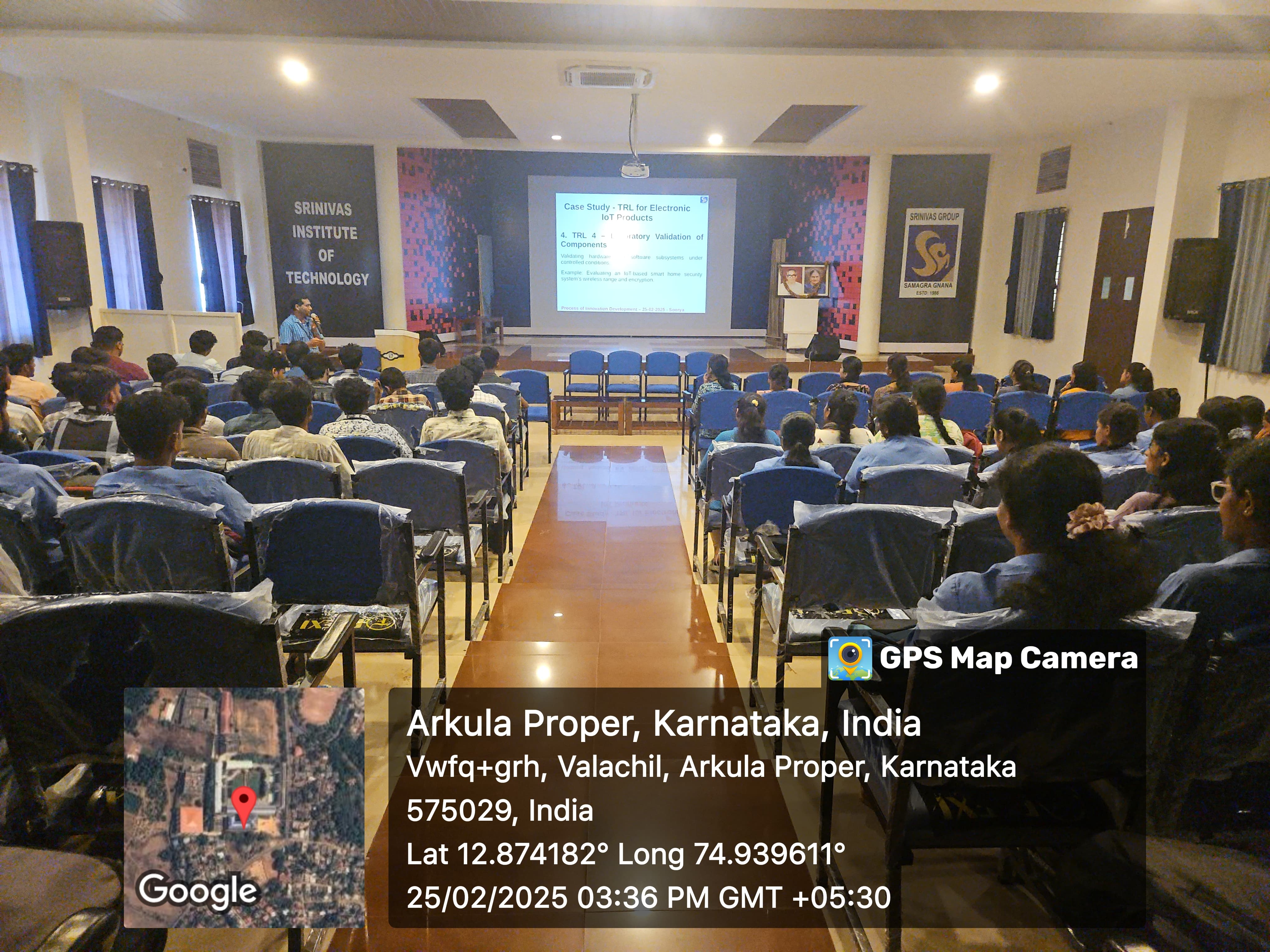 Mangaluru, February 25, 2025: The Department of Electronics and Communication Engineering at Srinivas Institute of Technology, Mangaluru, in association with **STEADY, EDP Cell, and the Institution’s Innovation Council (IIC),** successfully conducted a workshop on *'Process of Innovation Development and Technology Readiness Level - Applied to Electronics'.* The event provided valuable insights into the stages of **innovation development** and the application of **technology readiness levels (TRLs)** in the field of electronics. The workshop was conducted by **Dr. Soorya Krishna K, Head of the Department, ECE,** who shared his expertise on **technological advancements, innovation processes, and industry readiness.** The session covered essential topics such as: - **Technology lifecycle stages** - **Research and development (R&D) strategies** - **Prototyping and commercialization** - **Assessing technology readiness before market deployment** The interactive session enabled attendees, including **students, faculty members, and budding innovators,** to discuss real-world case studies and ask questions about **innovation development in electronics.** The participants appreciated the **practical approach and industry relevance** of the workshop. The event was **successfully coordinated** by **Prof. Flavita Janice Pinto, Staff Coordinator, ECE.** The workshop provided a **comprehensive understanding** of how innovations **progress from conceptualization to real-world applications,** making it an enriching experience for all attendees.