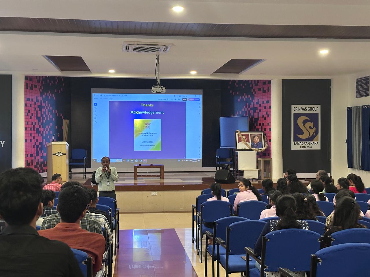 The Institution Innovation Council IIC in association with Internal Quality Assurance cell IQAC of Srinivas Institute of Technology Mangaluru celebrated the Anniversary of the National Education Policy NEP 2020 on July 29 2025 with an enlightening session aimed at spreading awareness about the vision and progressive reforms brought by NEP The event was graced by Dr Suresha D Professor in the Department of Computer Science and Engineering Srinivas Institute of Technology Mangaluru who served as the resource person In his address Dr Suresha D provided a comprehensive overview of the transformational aspects of NEP 2020 including the importance of multidisciplinary education skill based learning flexibility in curriculum and the integration of innovation and technology in education The session was started with a brief introduction to the objectives of NEP 2020 followed by the keynote by Dr Suresha D who emphasized the role of higher education institutions in aligning their strategies with national goals He encouraged faculty and students to actively participate in innovation activities promoted by the IIC and leverage the opportunities brought forth by NEP The event saw enthusiastic participation from over 120 students and faculty members who engaged in a vibrant QA session at the end reflecting their interest in the policys practical implications The program was organized with the full support of Dr Shrinivasa Mayya D Principal of Srinivas Institute of Technology whose backing underscored the institution’s commitment to fostering an environment that values educational excellence and holistic student development Additionally Dr Praveen Shenoy IIC Coordinator and Dr Suresha D IQAC Coordinator SIT played a significant role in facilitating the event ensuring it aligned with the IIC’s mission to promote innovative thinking and entrepreneurship among students The entire event was coordinated seamlessly by Prof Ganapathi Sharma Department of AI and DS Event Coordinator for the IIC who organized and managed the program to ensure meaningful engagement with students effectively commemorating the spirit of National Education Day and emphasizing the value of education in national and personal development The NEP 2020 Anniversary celebration concluded with a renewed commitment from the institute to integrate the principles of NEP into academic and co curricular activities further strengthening its mission to create a holistic multidisciplinary and future ready learning environment