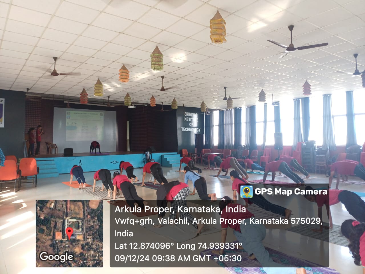 The Breath and Balance yoga event was successfully conducted on 9th December 2024 at Srinivas Institute of Technology, Mangaluru, by the student association ASCEE of the Computer Science and Engineering Department. Organized under the guidance of the department’s yoga coordinators, Prof. Shreya Shetty and Prof. Dikshit M Borkar, the session aimed to promote health and mindfulness among the students. Ms. Chithra from the 3rd semester led the session, demonstrating and guiding students through various yoga asanas. Dr. Suresha D, Head of the CSE Department, motivated the students and remarked, “Yoga is not a religion, it’s a way of living that aims towards a healthy mind in a healthy body.” The event commenced with a warm welcome address delivered by Ms. Chaithra, setting a positive tone for the session. Under Ms. Chithra’s leadership, participants practiced a series of yoga poses designed to enhance physical flexibility, mental clarity, and emotional balance. The event concluded with a vote of thanks by Ms. Sahana B N from the 3rd semester, expressing gratitude to all participants and coordinators for their contributions and support. The event witnessed active participation, with more than 45 students enthusiastically attending the session.