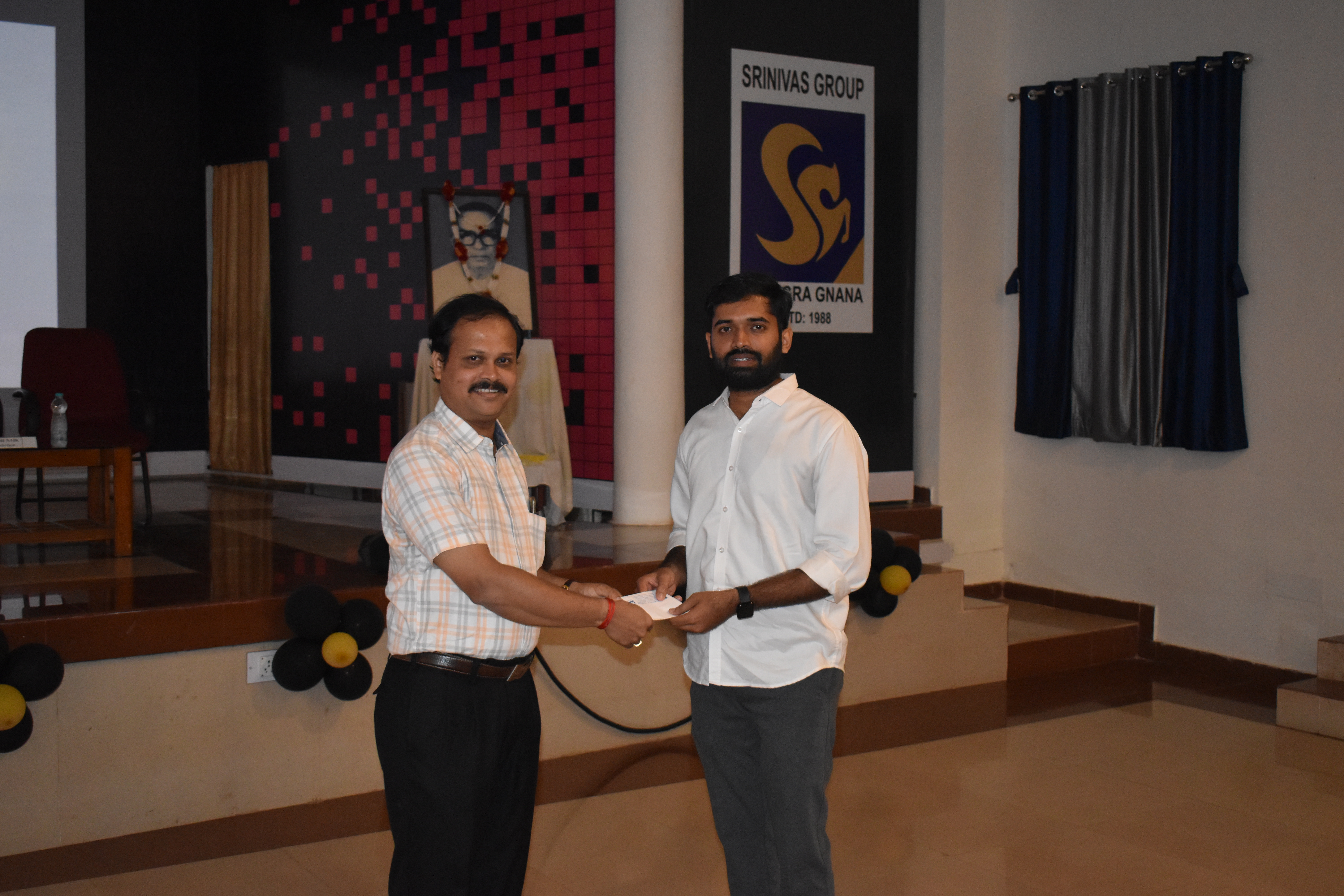 Srinivas Institute of Technology MCA department has organized Guest lecturer on the topic“Entrepreneurship “On 7th March at 9:00 am in the seminar Hall. The dignitaries presided are Dr. Shashidhar Kini K Head of the department of MCA, Mr. Gaurav kamath co-founder of Micro degree, chief guest of function and Mr.Rakesh co-founder of Micro degree, Mr. Rajesh Naik, MASM coordinator. The program was initiated with the Prayer. Dr. Shashidhar Kini K formally welcomed all the dignitaries, teaching and non-teaching staff and students and also introduced the chief guest Mr.Gaurav Kamath to the gathering. Mr. Gaurav Kamath is the co-founder and CEO at MicroDegree, Mangalore. He has 8+ years of work experience. Graduated in BE in Biotechnology from NMAMIT, NItte in the year 2015, he has worked across companies such as Infosys, Acenture & Tracxn. Mr. Gourav Kamath delivered a talk on Entrepreneurship, how to start with and enterprise, what are the different areas to be identified before being an entrepreneur. He also explained about the failures which he had faced during his start-up journey. He suggested a few guidelines to overcome this failure. In the next half of the session Mr. Rakesh, co-founder of Micro Degree, briefed about latest technologies for which the students must concentrate. He explained how to get an entry into an IT job and mentioned different skills needed to become an IT developer. At the end of the program Dr. Shashidhar Kini K, Head of the department honored the chief guest by giving the memento. Mr. Rajesh Naik, Faculty Advisor proposed the vote of thanks.