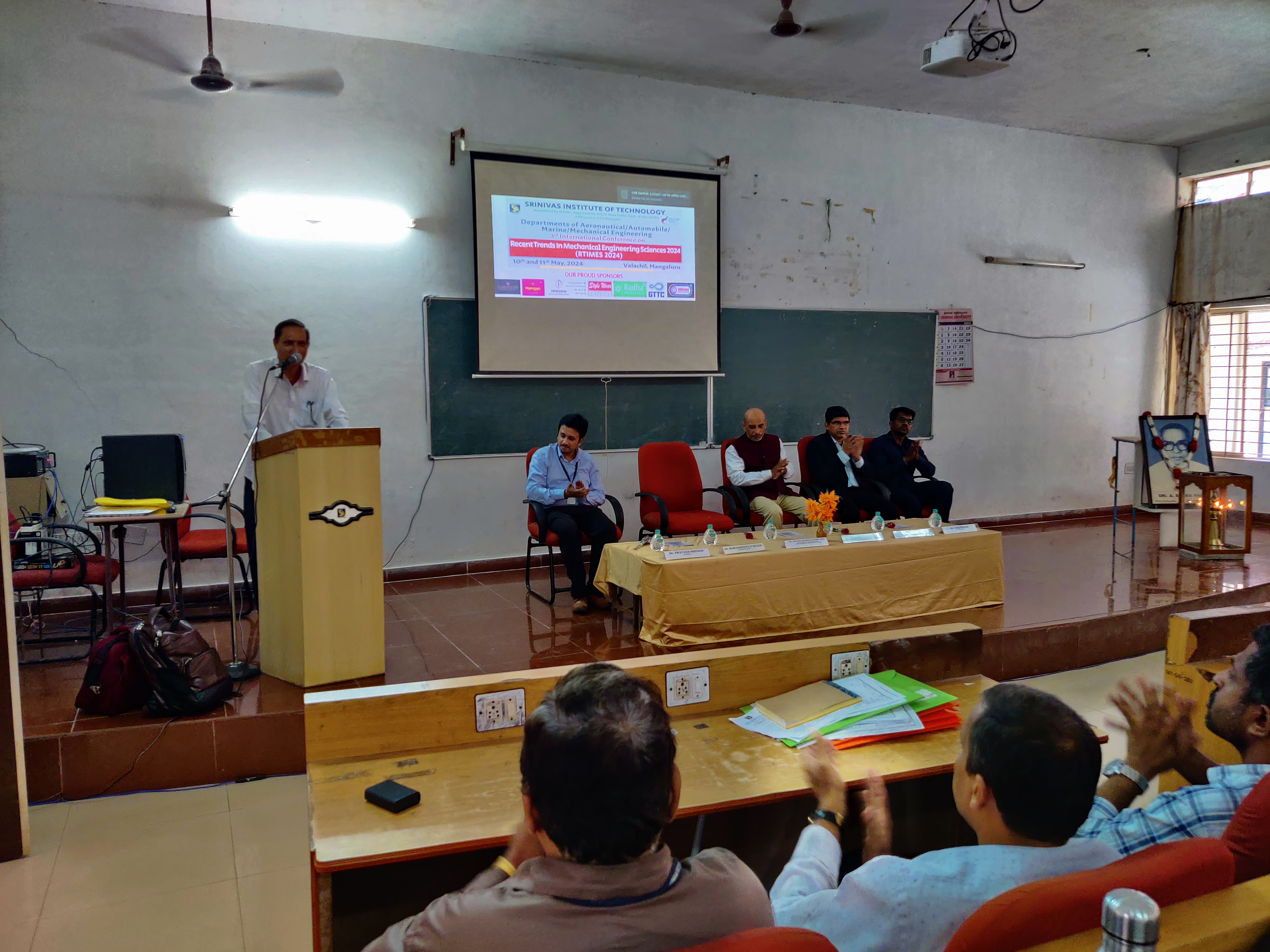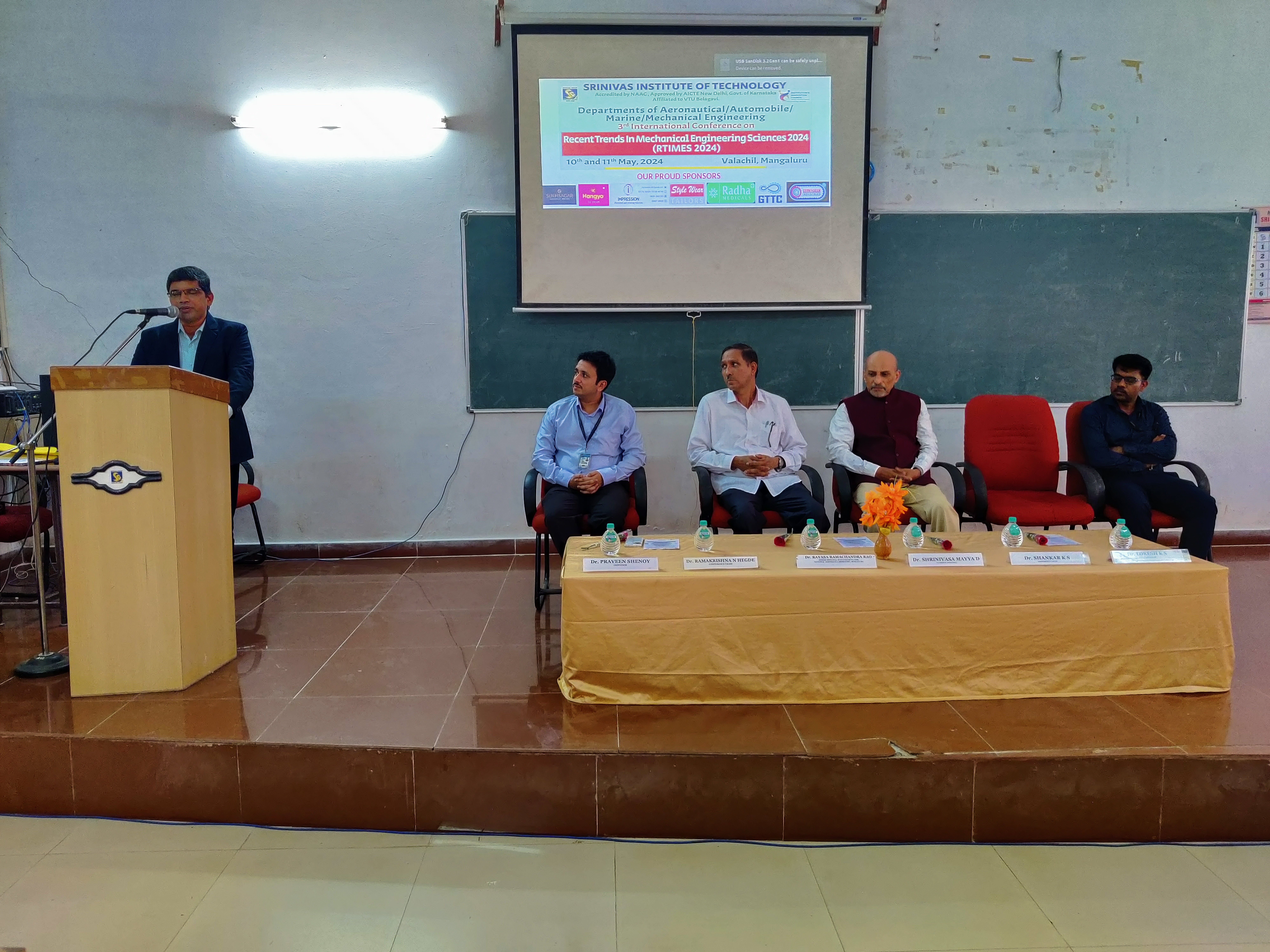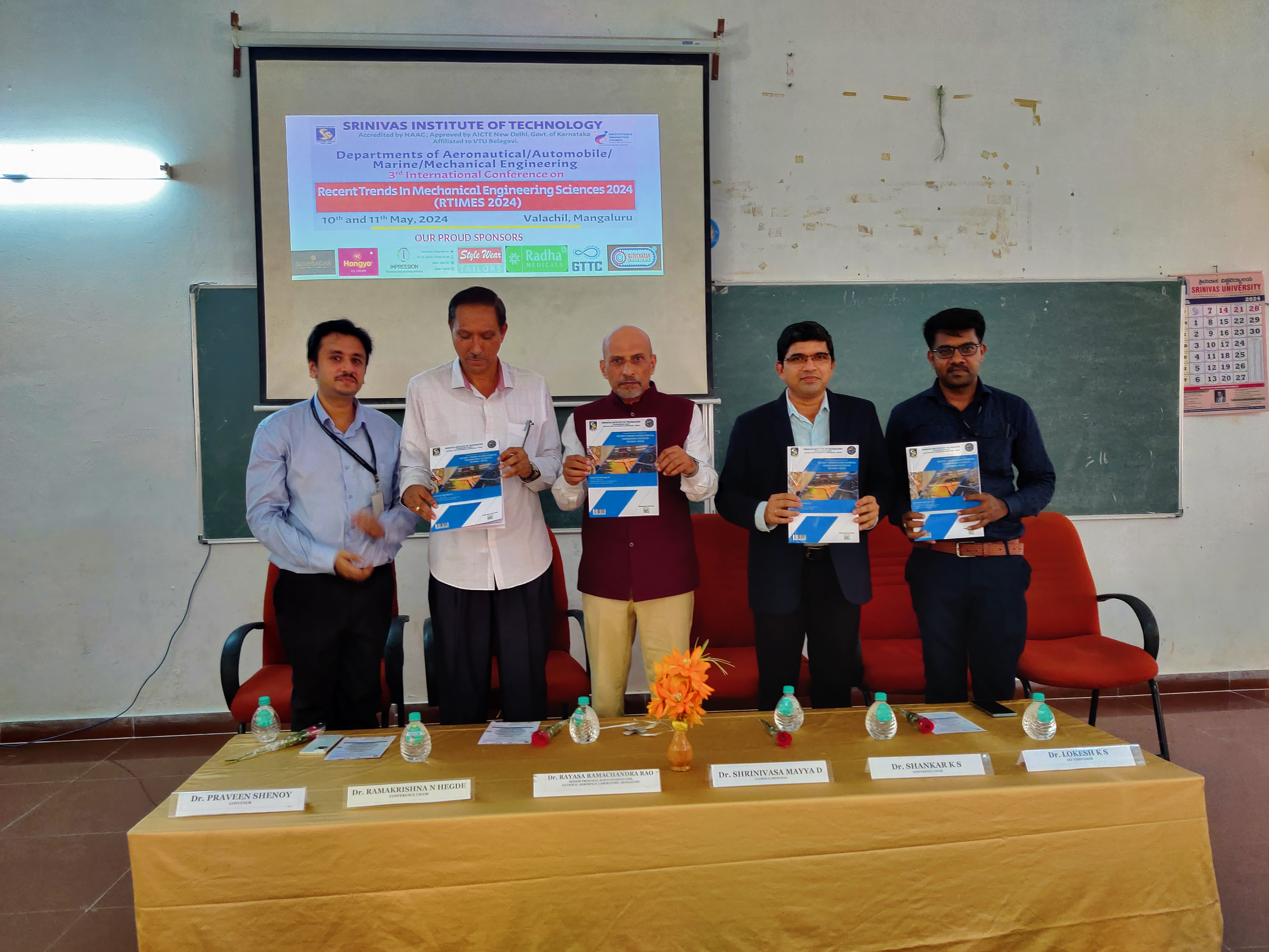 The inaugural function of the 3rdInternational Conference on Recent Trends in Mechanical Engineering Sciences, RTIMES-2024 marked a momentous occasion at the Srinivas Institute of Technology, Mangaluruon 10thMay 2024. Distinguished luminaries from academia and industry graced the event, setting the stage for insightful discussions and knowledge exchange. The inaugural ceremony commenced with a sense of grandeur as Dr.Rayasa Ramachandra Rao, Senior Principal Scientist at CSIR National Aerospace Laboratory, Bangalore, was the Chief Guest. Dr.ShrinivasaMayya D, the esteemed Patron and Principal of the College, adorned the event with his presence, underscoring the significance of the conference.Dr.Rayasa Ramachandra Rao's inaugural address resonated with wisdom as he emphasized the progression from Jnana to Vignan to Tantrajnana, highlighting the essence of knowledge evolution. He fervently advocated for original research, urging students to embark on a journey of scholarly exploration while emphasizing the importance of interdisciplinary collaboration. Dr. Shankar KS, the Conference Chair, illuminated the audience with insights into cutting-edge technologies and ongoing research in various industries. He envisioned a seamless integration of these advancements into the realm of mechanical engineering, thereby catalyzing job creation and technological innovation. Dr. Ramakrishna N Hegde, Conference Chair, underscored the pivotal role of publication and conferences in shaping the trajectory of a researcher's career. His address resonated with a call to action, urging students to immerse themselves in research endeavors, thereby fostering a culture of creativity and innovation.The ceremonial proceedings commenced with a soulful invocation by Ms. Poornima and Mithuna, students from the Department of Aeronautical Engineering. The lighting of the lamp symbolized the illumination of minds and the pursuit of knowledge.Dr. Praveen Shenoy, Convenor of RTIMES-2024, extended a warm welcome to the esteemed gathering, setting the tone for the conference. Dr.Lokesh V, HOD of the Department of Marine Engineering, eloquently introduced the Chief Guest, enriching the audience with insights into his illustrious career. Dr.Lokesh K S, Co-Convenor of RTIMES-2024, concluded the proceedings with a heartfelt vote of thanks, expressing gratitude to all participants for their invaluable contributions.Prof.Vivek Vijay Kumar, Department of Marine Engineering was the master of ceremonies.The inaugural function of RTIMES-2024 served as a beacon of knowledge, igniting a passion for research and innovation among the attendees. As the conference unfolds, it promises to be a melting pot of ideas, fostering collaboration and driving advancements in the field of mechanical engineering sciences.