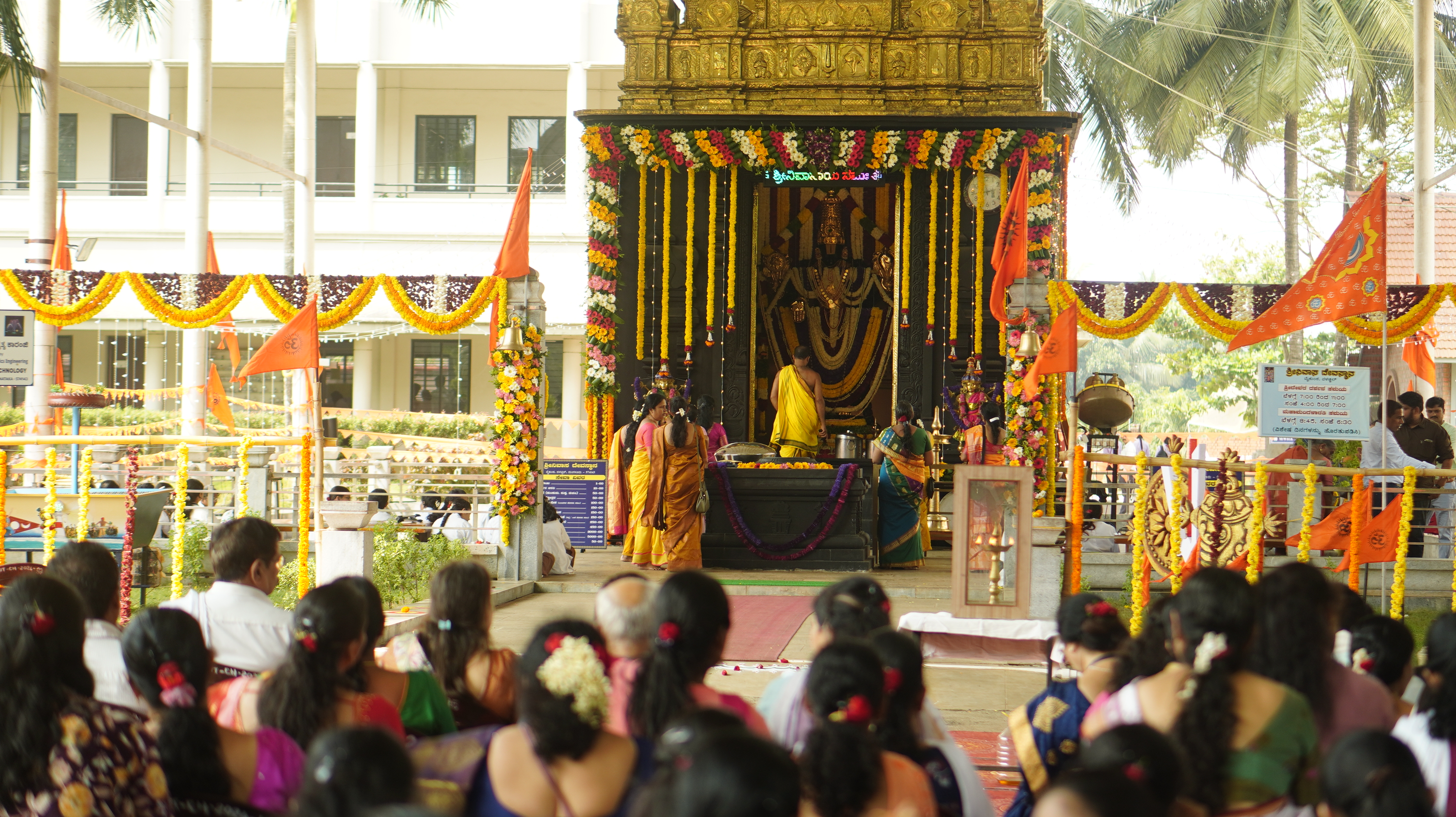 The auspicious occasion of Vaikuntha Ekadashi was celebrated with devotion and grandeur at the Vaikunta Campus of Srinivas Institute of Technology, Mangaluru, on 10th January 2025. The event brought together students, faculty, and dignitaries in large numbers to seek the divine blessings of Lord Srinivasa. The celebration was graced by the esteemed presence of Dr. CA A. Raghavendra Rao, Chancellor of Srinivas University and President of A. Shama Rao Foundation; Vijayalakshmi Amma, Director of Srinivas Group of Colleges; Dr. A. Srinivasa Rao, Pro-Chancellor of Srinivas University and Vice President of the Foundation; and Er. Smt. Mithra S. Rao, Trustee Member of A. Shama Rao Foundation. Their presence added a spiritual and inspiring essence to the event. The day began with the ceremonial opening of the Vaikuntha Dwaram, symbolizing the gateway to liberation. Devotional activities such as Bajane and Kunitha Bajane filled the campus with rhythmic vibrancy, while the recital of the Vishnu Sahasranamam by students, faculty, and devotees enhanced the spiritual atmosphere. The highlight of the event was the Maha Pooja performed for Lord Srinivasa by Dr. CA A. Raghavendra Rao, Dr. A. Srinivasa Rao, and family members, invoking blessings for everyone present. Under the able leadership of Dr. Shrinivasa Mayya D, Principal of Srinivas Institute of Technology, the event witnessed enthusiastic participation from principals, deans, department heads, teaching and non-teaching staff, and students. The efforts of coordinators Dr. Sumana and Dr. Prasad P ensured the smooth execution of the day’s activities. Vaikuntha Ekadashi 2025 at Srinivas Institute of Technology was a resounding success, blending spirituality, cultural richness, and community spirit. The event stood as a testament to the institution's devotion and unity, leaving an indelible mark on all attendees.