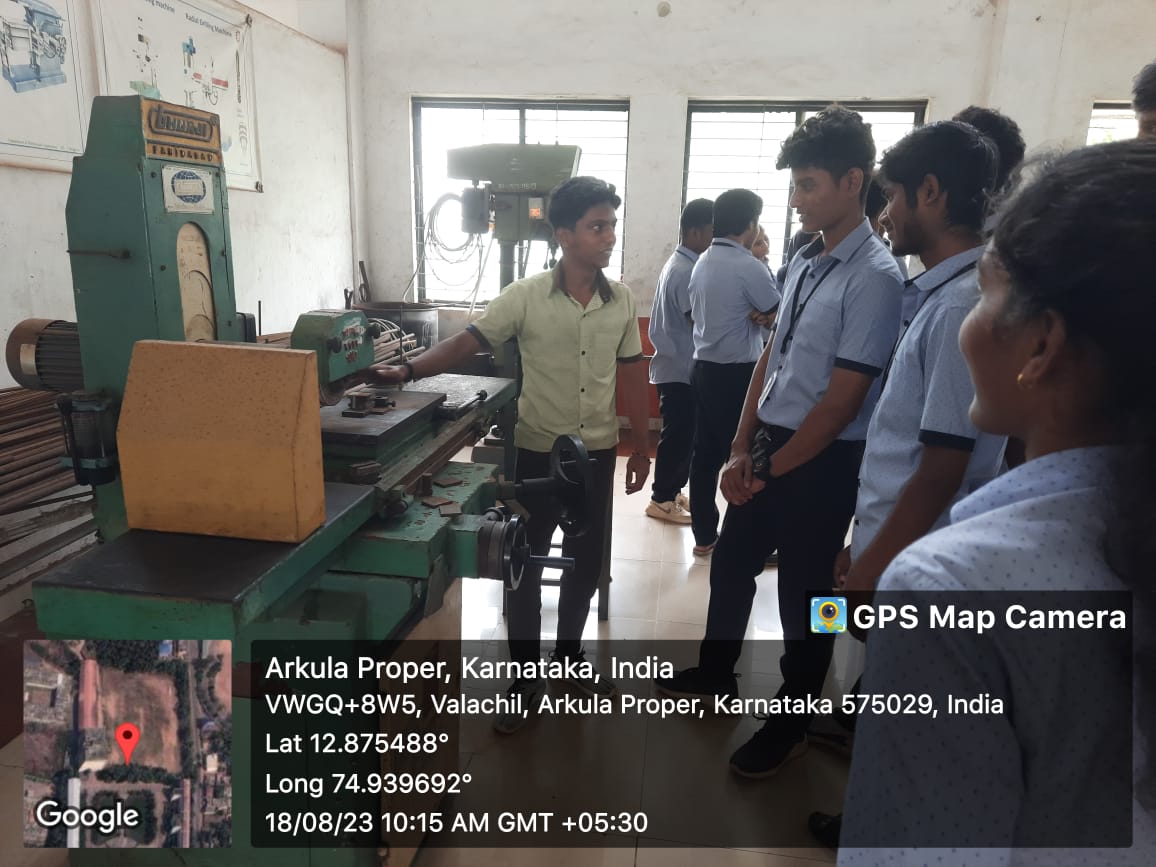 Department of Mechanical Engineering and All Students Mechanical Association (ASMA) jointly organised one day workshop on introduction to various machine tools of the Mechanical Labs called “Mechanical Wisdom” for the students of first year on 18th August 2023. This workshop gave the overall working features and applications of the various machine tools used in the mechanical field of various industries.Dr. Shankar K S, Professor and HoD of Mechanical Engineering department inaugurated the workshop. In his inaugural address Professor congratulated the students for organizing the workshop and explained the importance and benefits of attending such informative workshops. Second year students of mechanical engineering gave the demo of various tools and explained the working mechanism and applications of various tools used. Students of first year had the hands on experience on working with, lathe machines, drilling machines, welding etc. Students also got introduced into the working of CNC machine. Students had very interactive session on the workshop. Each student of the workshop got to know the machine tools and its working. Faculty coordinator of the workshop Prof. Sathya Prakash A gave the overview of the workshop. Dr. Raghavendra M J, Faculty coordinator of the ASMA proposed the vote of thanks.