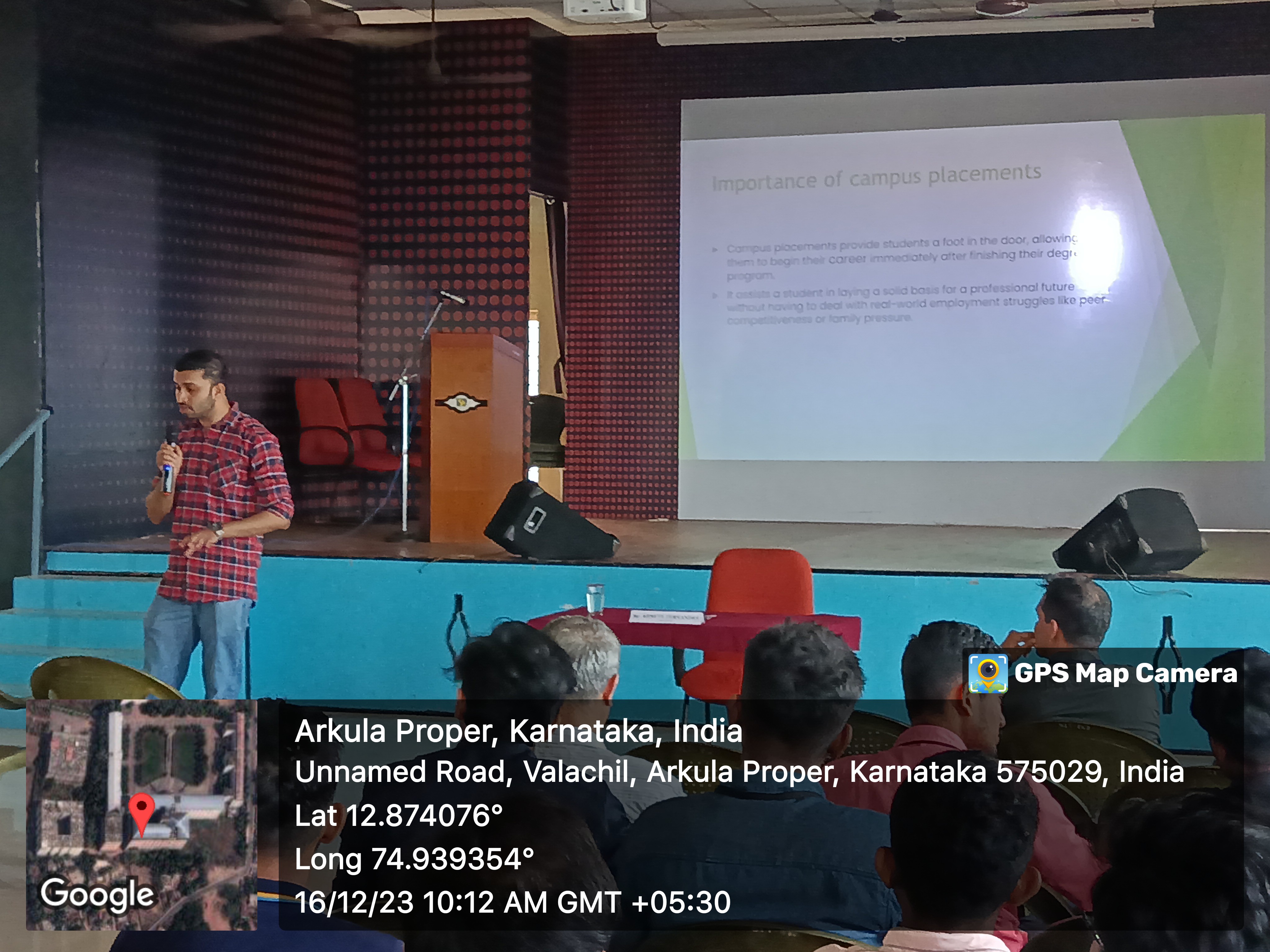 On December 16, 2023, the association of Electronics and Communication Engineering ‘STEADY’ hosted an insightful and inspiring career guidance talk by Mr. Kenute Fernandes. The event aimed to provide valuable insights into career development, personal growth, and navigating the professional landscape. Mr. Kenute Fernandes shared his experiences and expertise, offering guidance to students and professionals alike.Mr. Kenute Fernandes, a distinguished professional from Riskonnect, captivated the audience with his credentials and achievements. His diverse background and success story set the stage for an engaging and informative session. The talk delved into the importance of self-discovery and career exploration. Mr. Kenute Fernandes encouraged attendees to identify their passions, strengths, and interests, emphasizing that a fulfilling career often aligns with personal values.In a rapidly evolving professional landscape, Mr. Kenute Fernandes stressed the significance of adaptability and continuous learning. He shared anecdotes from his own journey, highlighting how staying curious and open to new opportunities played a pivotal role in his success. He offered practical tips on networking strategies, emphasizing the value of mentorship and collaboration. He shared practical advice on goal-setting and encouraged attendees to take initiative in their careers.The talk left a lasting impact on the audience, offering valuable insights and practical advice for navigating the complexities of the professional world. The event served as a beacon of motivation for individuals at various stages of their careers, reinforcing the importance of continuous learning, resilience, and strategic networking in achieving long-term success.