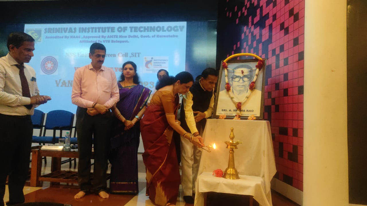 Vanamahotsav was organized on 28/06/23 by Green Cell and NSS Unit. Green Cell Dr.Soorya Narayana K. welcomed the gathering. President of the function Dr.C.A Raghavendra Rao, Chancellor, Srinivas University and President, A Shama Rao Foundation, Mangalore elaborated on responsibilities to save our forest and also he contributed 1000 fruits and other saplings and encouraged students to make the campus a green campus. Smt. Vijayalakshmi R. Rao Trustee Member, Board of Governors Srinivas University, Director, A.Shama Rao Foundation encouraged students to plant more and more saplings so that environmental imbalance can be reduced. Chief Guest of the function Dr.Srinivas Rao, Pro Chancellor, Srinivas University and Vice-President, A Shama Rao Foundation Mangalore, enlightened that we have to keep interacting with nature in one or other way, which improves our physical and mental fitness. Smt Mitra S. Rao, Trustee Member, Board of Governors Srinivas University, Secretary, A.Shama Rao Foundation, insisted students to make their own team which can protect environment in Dakshina kannada by means of campaigning and creating awareness among the public. She also pointed out that animals and human clashes can be avoided by not cutting trees in cities. Dr.Shrinivasa Mayya .D, Principal Srinivas Institute of Technology, was present during occasion. Principals of sister institutions and Hods of various Department, NSS coordinator P.Rakesh Mallya, thanked the gathering. Prof Steven Tellis was the master of the ceremony