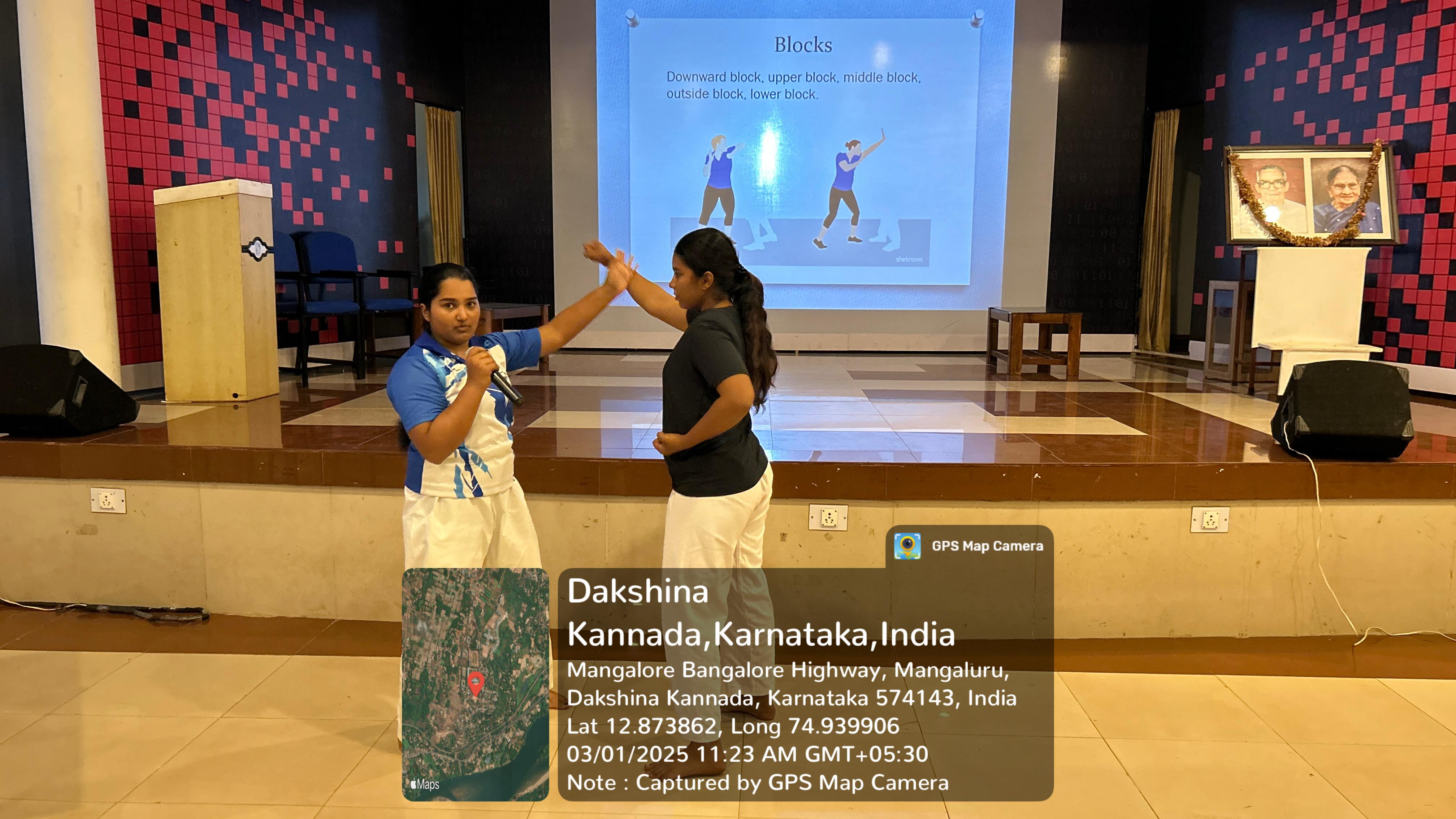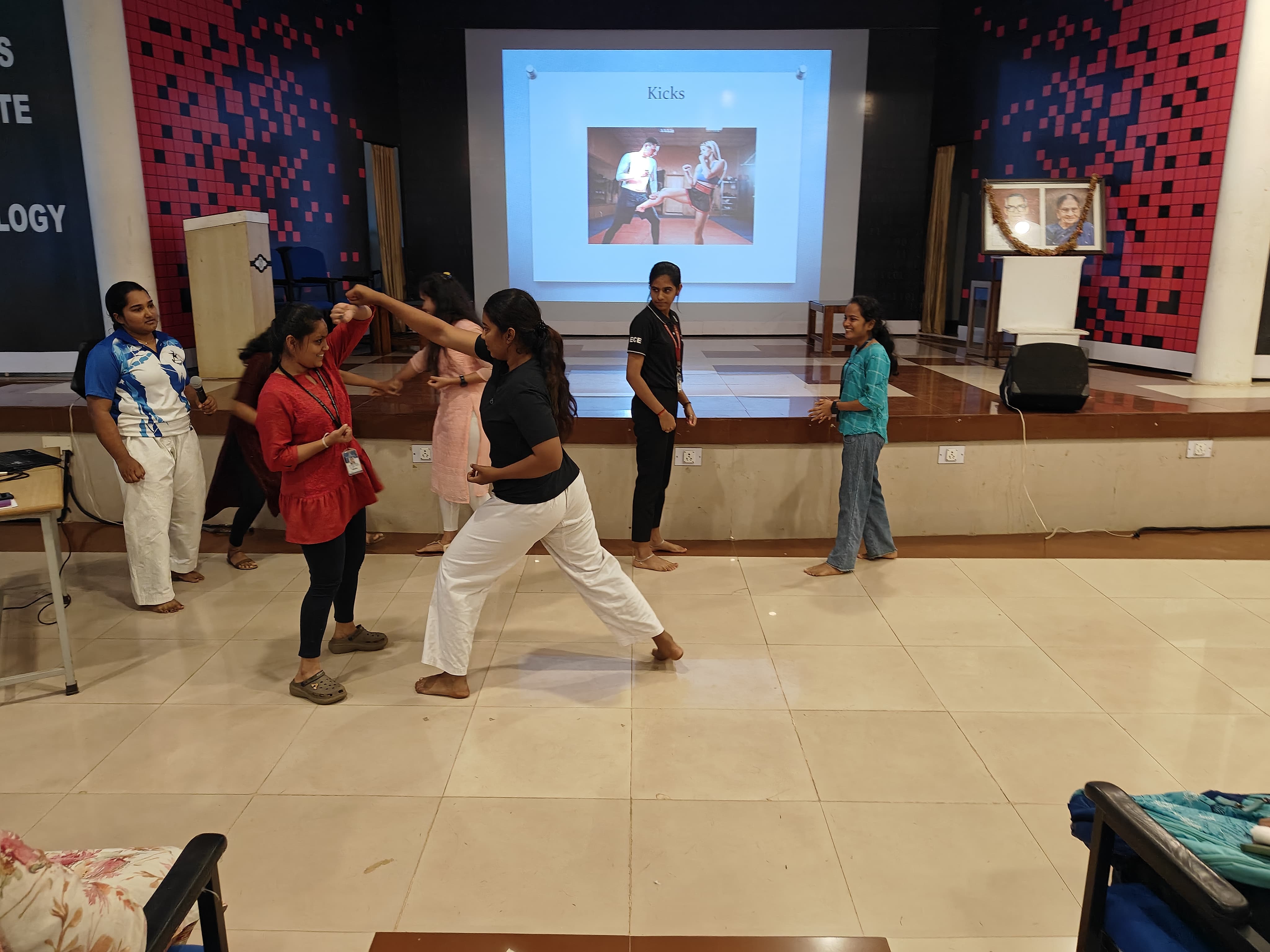 Department of Electronics and Communication Engineering and Department of Computer Science and Business System SRINIVAS INSTITUTE OF TECHNOLOGY Valachil, Mangaluru A SESSION ON THE POWER OF VOICE: VERBAL SELF-DEFENCE AND BOUNDARY SETTING. The Department of Electronics and Communication Engineering (ECE) and the Department of Computer Science and Business System (CSBS), in association with the Women Cell, organized an insightful session on The Power of Voice: Verbal Self-Defence and Boundary Setting. The program was conducted in the Seminar Hall and witnessed active participation from students and faculty members. The session began with a welcome speech by Jitheeksha, a third-year student from the ECE department, who warmly introduced the session and its significance. The resource person for the session was Ms. Riktha Kiran, a third-year student from the ECE department. Sameeksha from the CSBS department accompanied for the demo session, adding value to the practical demonstrations. The highlights of the session included: Understanding the significance of voice in self-defence, techniques for assertive communication and setting boundaries, Practical demonstrations on verbal self-defence, Hands-on session to practice voice modulation and confident speech, Application of self-defence strategies in real-life situations. The session included both demonstration and hands-on activities, making it an engaging and practical learning experience. Participants learned how to use their voice as a powerful self-defence tool and practiced various techniques for effective verbal boundary setting. The session was highly informative and interactive, equipping participants with essential skills in verbal self-defence. It successfully emphasized the importance of using one’s voice as a means of setting boundaries and protecting oneself in various situations. The event concluded with positive feedback from attendees, who found the session beneficial for personal safety and confidence-building. Deeksha Dr Soorya Krishna K Dr. Shrinivasa Mayya D. Women cell coordinator HOD Principal Department of ECE DATE: 01-03-2025 PLACE: VALACHIL