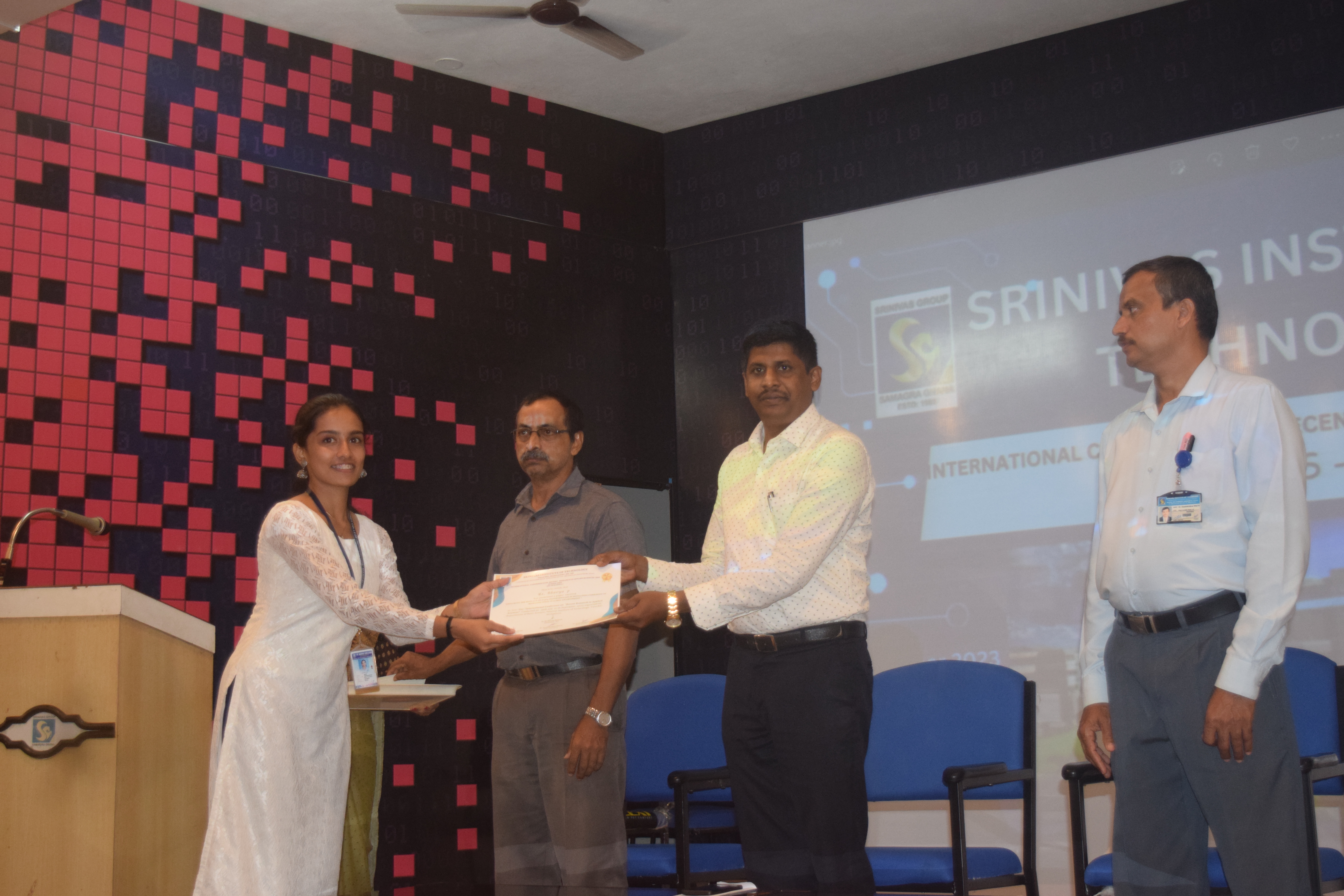 An International Conference on “Recent Research in Applied Sciences [ICRRAS-2023]” was organized by the Departments of Basic Science on 26th and 27th September 2023 at Srinivas Institute of Technology, Mangaluru. The conference proceeded with plenary talk by three eminent scientists as the key note address which is followed by paper presentation by the delegates. On 27th September 2023 valedictory programme of the two day conference being conducted. Dr.Praveen B.M., Director-Research and Innovation council, Professor and Head in Chemistry and nanotechnology, Srinivas University presided over the function, few delegates presented the feedback about the conference appreciating the international conference organised by the departments of Basic science, and they expressed their opinion and suggestions. The best paper presentation award and participation certificates being handed over to the delegates. Dr. Gopalakrishna Bhat N. HOD of Chemistry who is the convenor of the conference welcomed the dignitaries and delegates during valedictory programme, Mrs. Sahana G.K. Assistant professor in Physics rendered vote of thanks to renowned scientists who have participated as resource persons, chair persons of paper presentation sessions who were valuators for paper presentation as well as all the delegates. The conference session was anchored by Dr. Sumana V.S., Associate Professor, Department of Chemistry and Vasthalya. P., Assistant professor, Department of Mathematics.