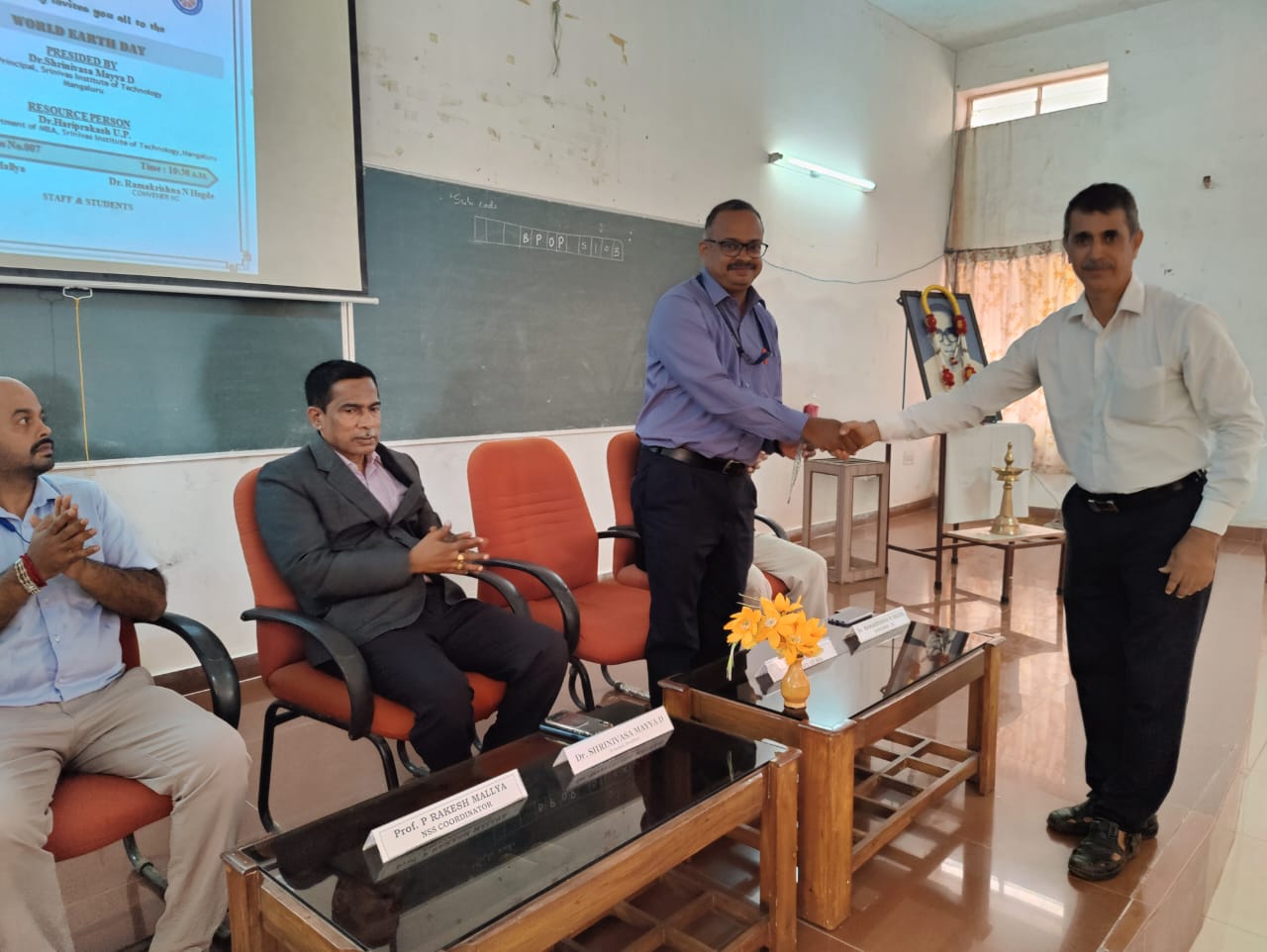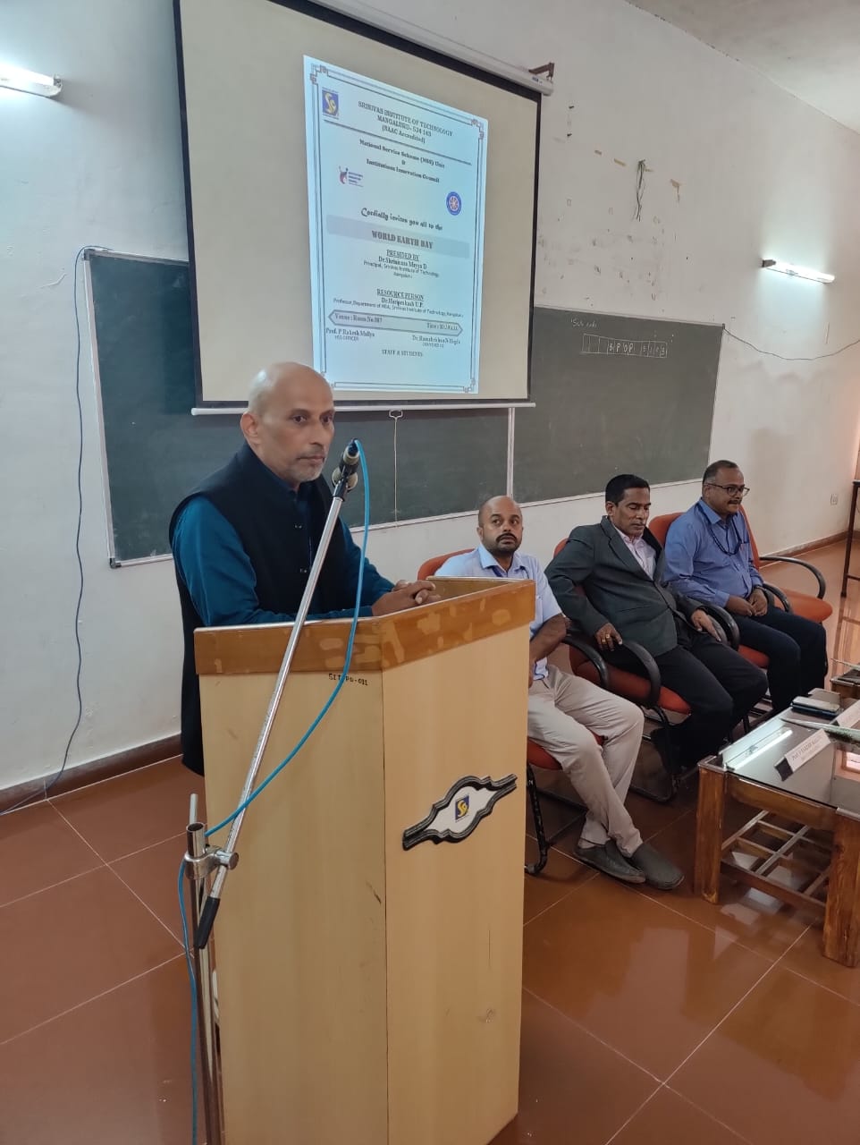 Srinivas Institute of Technology Valachil Mangaluru and Institution's Innovation Council (IIC) in association with NSS unit of the institute has celebrated the World Earth Day in the college. Speaking on the occasion as the Resource Person, Dr. Hariprakash U.P, Professor, Department of MBA,SIT insisted on the importance of planting trees and explained how valuable the oxygen is and how non degradable things are spoiling the earth. He also spoke on consequences of spoiling the earth and change in climate condition. He insisted that young generation should consciously contribute to the protection of mother earth. Dr. Shrinivasa Mayya D., the principal of the institute, in his presidential remark emphasized how a small gesture towards nature like avoiding littering can make a big difference in protecting our earth from the pollution. He also urged students to keep the campus clean as this would develop the responsibility towards the protection of earth for next generation. The convener of IIC, Dr. Ramakrishna N Hegde, elaborated on how our ancestors were living in harmony with nature and also quoted the versus of Vedas in which reference to protection of nature is mentioned. Dr. Praveen Shenoy, welcomed the gathering and Prof. Gourish Hegde ,Introduced the resource person to the gathering. Prof. Rakesh Mallya, NSS coordinator, rendered the vote of thanks. Prof. Vivek Kumar, emceed the program.