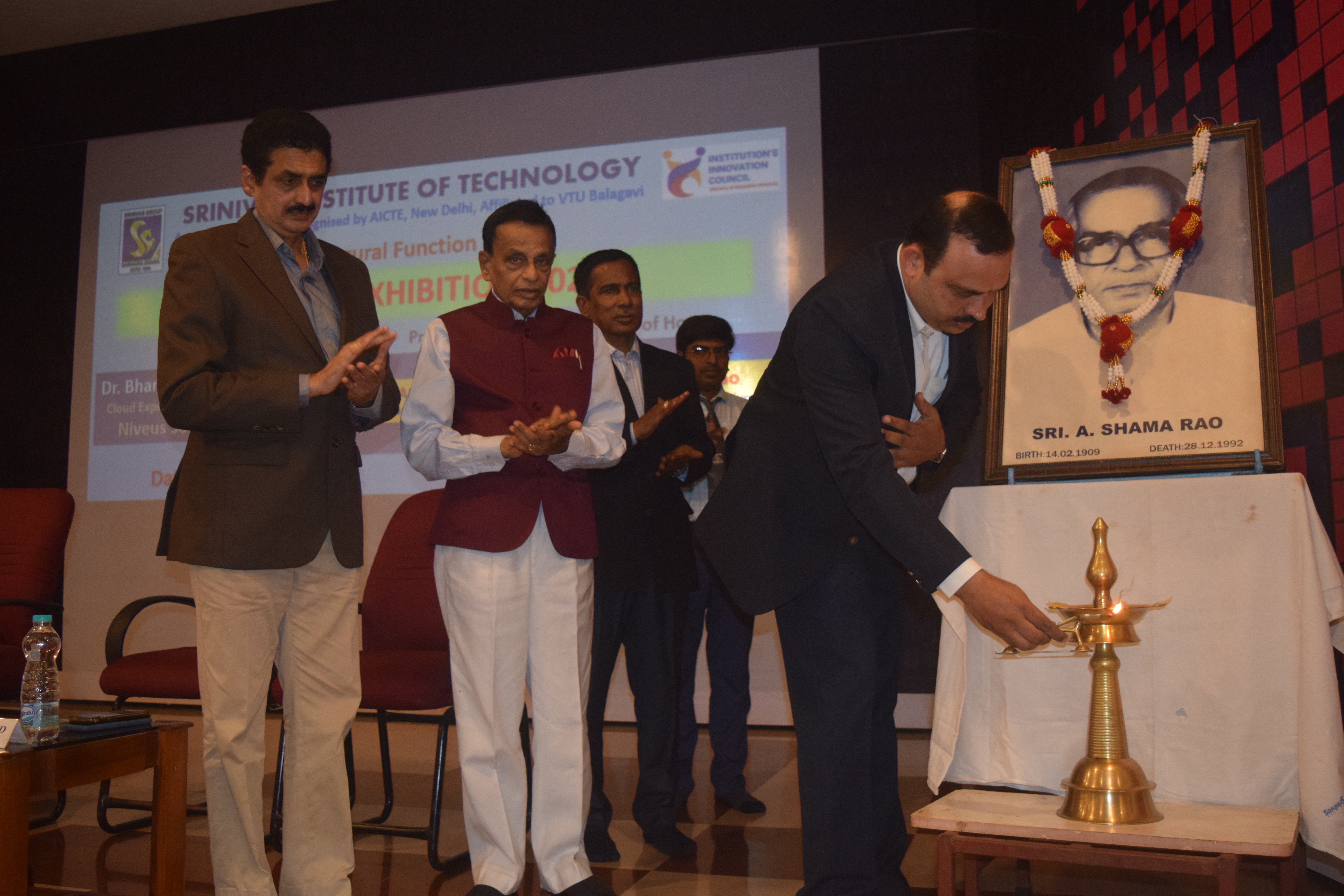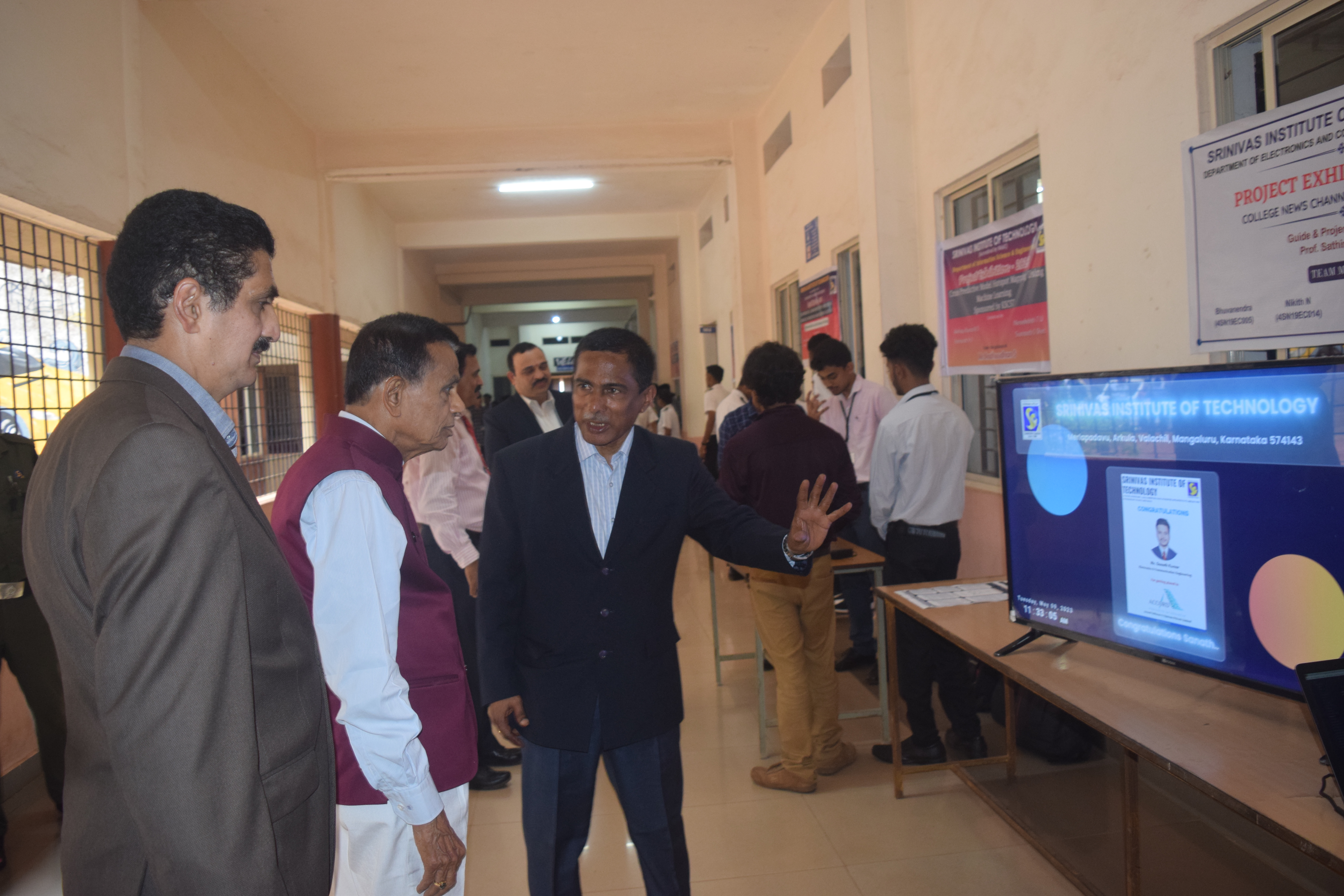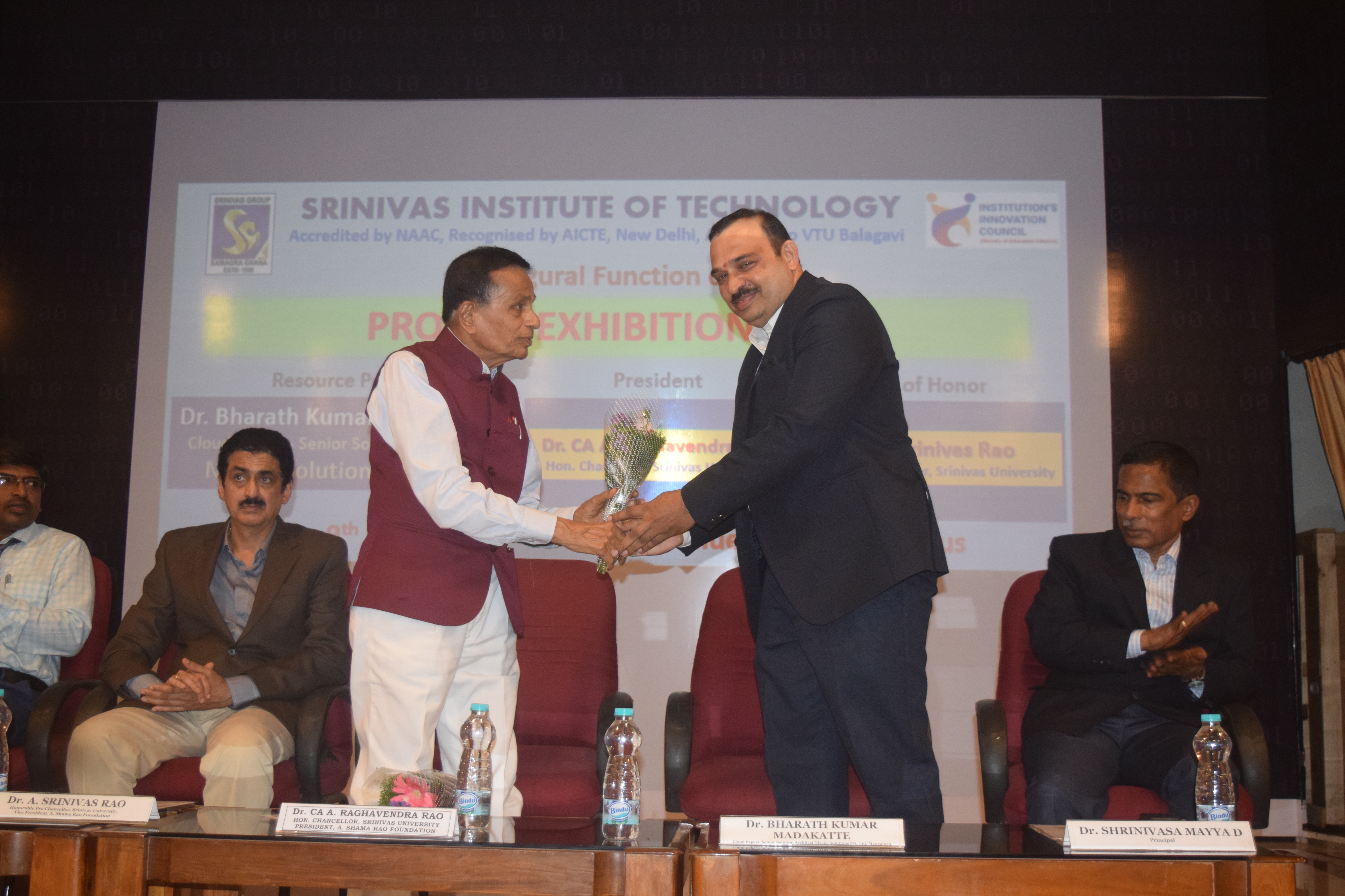 Inauguration of Student Project Exhibition– 2023 of Srinivas Institute of Technology, Mangaluru, held on 9th of May 2023. Dr. CA A. Raghavendra Rao, Chancellor, Srinivas University and president of A Shama Rao Foundation presided over the inaugural function. Dr. Bharath Kumar Madakatte, cloud expert – Senior solution Architect, Niveus Solutions Pvt. Ltd, Mangaluru, was the chief guest. Dr. A. Srinivas Rao, Pro Chancellor, Srinivas University and Vice-President of A Shama Rao Foundation was the Guest of Honor. The dais was shared by Shrinivasa Mayya D., Principal, Srinivas Institute of Technology and Professor Jayaram Thumbe Convener of the Project exhibition. The chief guest Dr. Bharath Kumar Madakatte addressed the students with his motivational talk, mentioned students that, projects are an opportunities to explore what they learnt and challenges involved in student’s projects. He also said, learn new things from failure and different thinks will bring the innovative ideas. Dr. CA A. Raghavendra Rao, in his presidential speech, mentioned the importance of hard work, different thinking and satisfaction in order to bring innovative projects. Dr. A. Srinivas Rao, mentioned about requirement of exhibition of skills and encouragement to complete the projects. Also he encouraged the students to develop the projects into useful products for public and apply for the patent. Professor Jayaram Thumbe, the convener of the project exhibition briefed about the project exhibition 2022-23. The total of 86 projects in all departments will be on display, which includes 14 are sponsored by Karnataka State Council for Science & Technology (KSCST) Bengaluru and 16 are sponsored by VTU Belagavi. All the projects will be judged by internal and external experts. The best projects will be awarded with cash prizes. The inaugural function was started with Prayer by Mr. T Vamsi, from Marine department. Professor Jayaram Thumbe the convener of the project exhibition welcome the gathering. The chief guest was introduced by Mr. Abhishek James, from Marine department. Professor Sathish, from Electronics and Communication Department, delivered the vote of thanks. Professor Vivek Vijay Kumar from department of Marine Engineering was the master of ceremony.