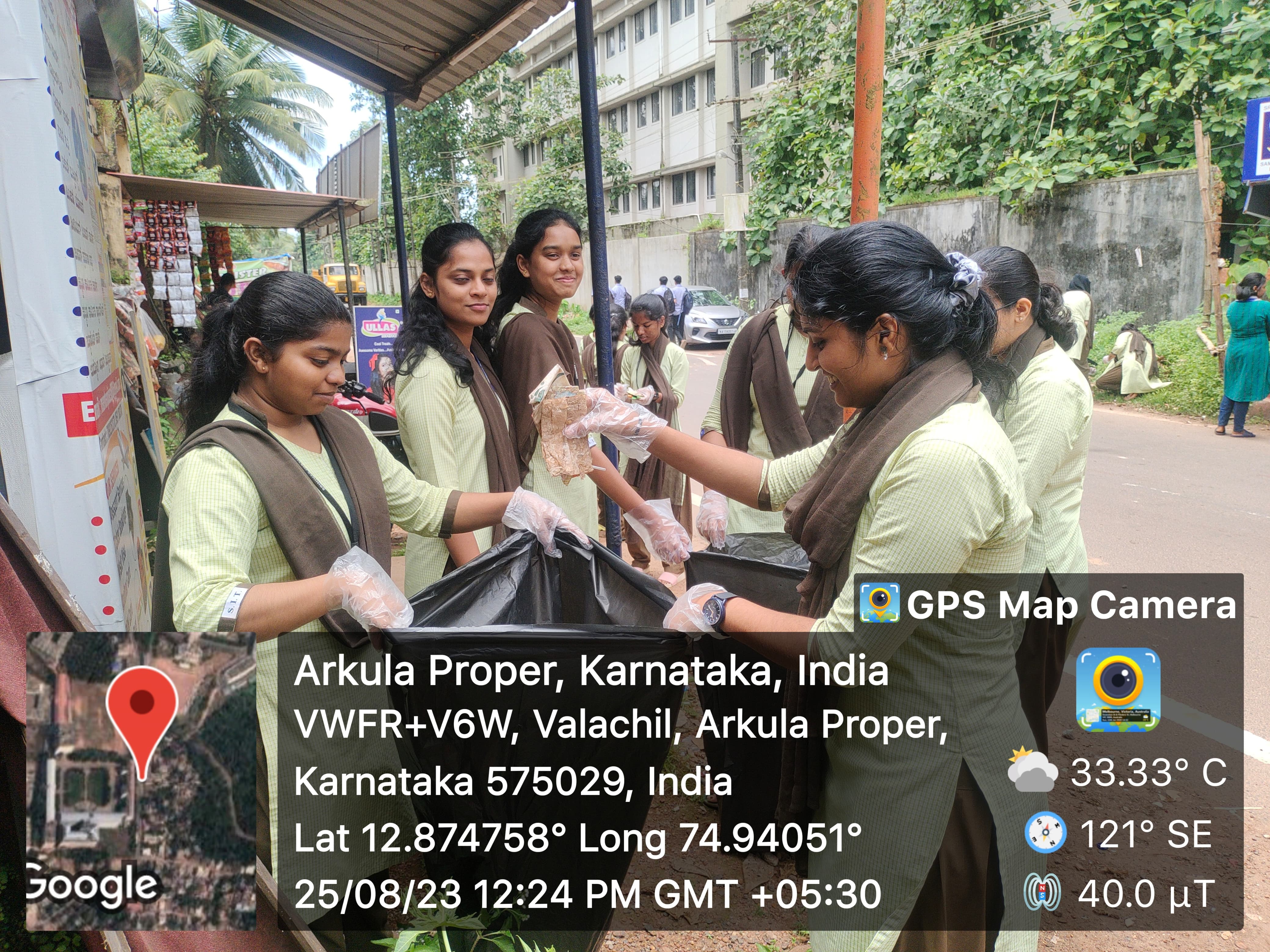 The Department of Computer Science and Engineering NSS organized an event on Swachh Bharat for 3rd year NSS students on 25th August 2023 at outside the Srinivas Institute of Technology, Mangaluru campus. Prof. Deepthi P. Dsouza, NSS coordinator along with Prof. Chaitra and Prof. Deeksha from Department of CSE had conducted this event. Prof. Ravishankara K, H.O.D, CS&E, motivated to conduct this event.