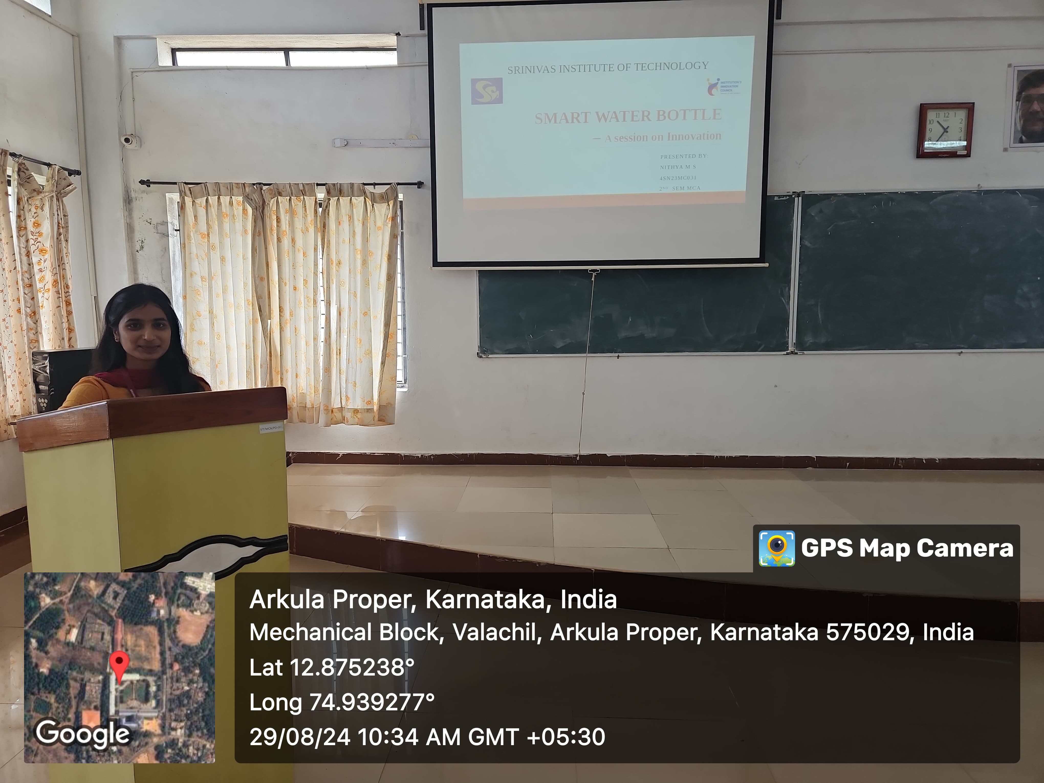On 29th August 2024, the MCA Department of Srinivas Institute of Technology, Mangalore, in association with the Institution's Innovation Council (IIC), organized a session titled Igniting Innovation to inspire creativity and innovative thinking among students, featuring presentations by MCA students on diverse topics such as artificial intelligence, data security in cloud computing, IoT in smart cities, and sustainable software development, which sparked engaging discussions and highlighted the importance of innovation in today's technological landscape, successfully promoting a culture of innovation, teamwork, and collaborative learning, leaving a lasting impact on all participants.