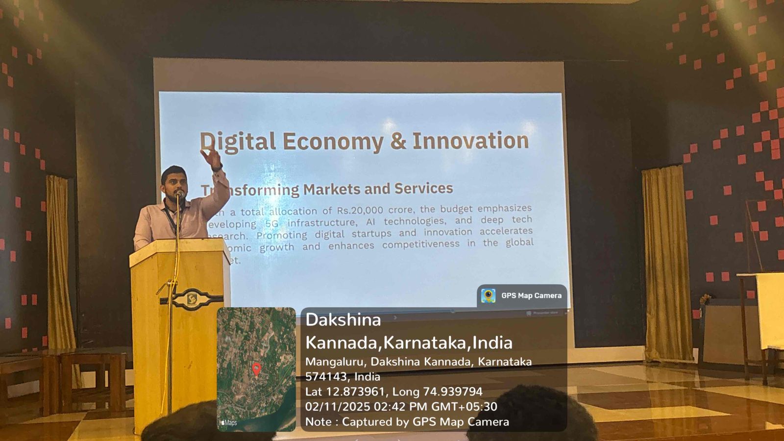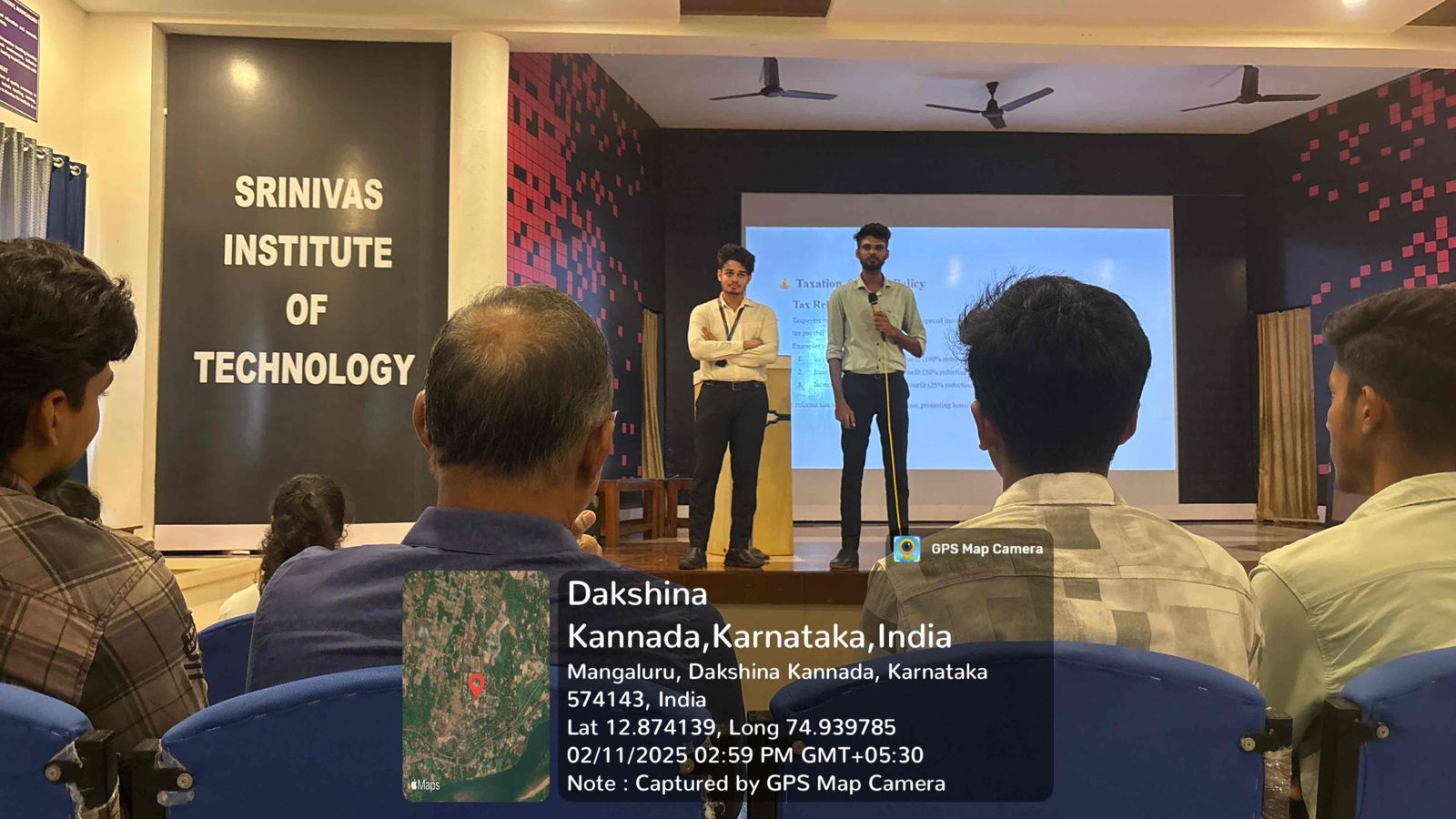 Mangaluru, February 11, 2025: The Department of MBA at Srinivas Institute of Technology, Valachil, in association with Finnova Club, organized a session on 'Union Budget Analysis 2025-2026' by MBA students. The session provided an in-depth review of key budgetary allocations and their impact on various sectors. Viyon Pais introduced the budget, explaining its significance and objectives. Kushal analyzed the agricultural sector, focusing on government policies and financial provisions. Mohammad Ishaq covered the MSME sector, highlighting support for small businesses. Nayana and Dhanya discussed infrastructure developments in transport, energy, and urban planning. Janaka examined healthcare funding and public health initiatives. Sherly and Kishan presented on social welfare schemes for marginalized communities. Navneeth and Roshmitha explored budgetary provisions for education and skill development. Tanushree analyzed defense allocations, emphasizing national security and modernization efforts. Royston discussed the digital economy, innovation, and technological growth. Dharshan provided insights into fiscal deficit and taxation policies. Suhas and Karthik concluded with an overall summary, assessing the budget’s broad economic impact. The session fostered a deeper understanding of financial policies, engaging participants in meaningful discussions. The Department of MBA and Finnova Club extend their gratitude to all speakers, faculty, and attendees for making the event successful.