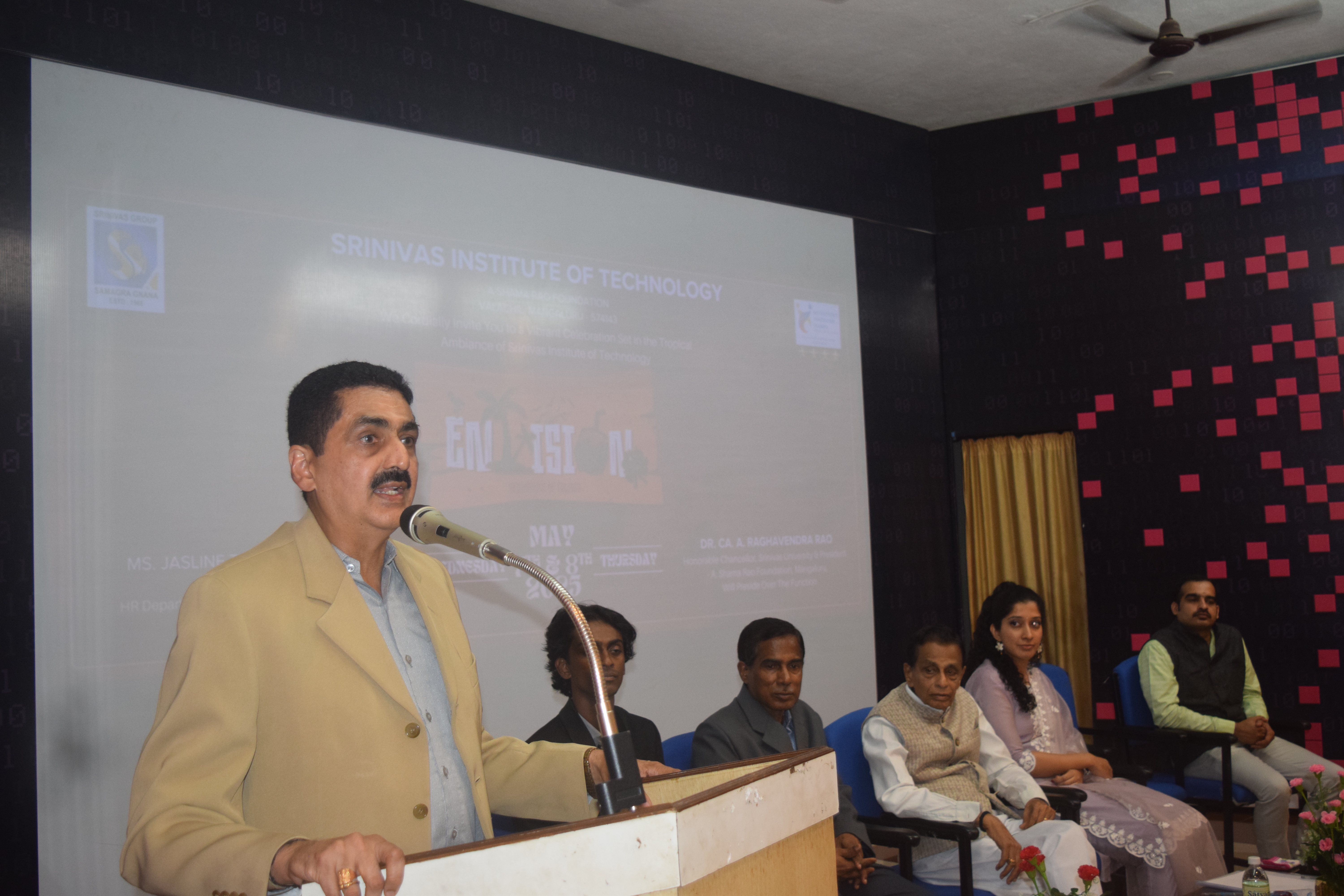National-Level College Fest – Envision 2025 – Inaugurated at Srinivas Institute of Technology, Mangaluru Mangaluru, May 7, 2025: Srinivas Institute of Technology, Valachil, Mangaluru, witnessed the grand inauguration of Envision 2025, a national-level intercollegiate techno-cultural fest designed to ignite innovation, leadership, and holistic student development. The event was presided over by Dr. CA A. Raghavendra Rao, Honorable Chancellor of Srinivas University and President of A. Shama Rao Foundation, Mangaluru. In his presidential address, he emphasized the importance of communication skills in a student's career. “Effective communication is the bridge to success. Mastery over Commercial English is essential for professional growth,” he remarked. Dr. A. Shrinivas Rao, Honorable Pro Chancellor of Srinivas University and Vice President of A. Shama Rao Foundation, addressed the gathering and applauded the students’ efforts in organizing Envision 2025. He stressed that such events build innovative thinking and leadership qualities and are a vital part of personality development at Srinivas institutions. Ms. Jasline Theresa Menezes, HR professional at Tetherfi Technologies Pvt. Ltd., graced the occasion as Chief Guest. In her insightful address, she emphasized the growing demand for soft skills in the corporate world and encouraged students to participate in extracurricular activities. “Skills like crisis management, leadership, and project execution can be developed through these platforms. Embrace challenges and turn them into opportunities,” she advised. Dr. Shrinivasa Mayya D, Principal of Srinivas Institute of Technology, florally welcomed the President of the function, Dr. CA A. Raghavendra Rao, and appreciated the spirit of the students in hosting a fest of such scale and diversity. Mr. Acharya Pavan, Student Coordinator of Envision 2025, delivered the formal welcome address, introduced the dignitaries, and set the tone for the event with enthusiasm and energy. Dr. Rajesh, Faculty Coordinator of the fest, presented a comprehensive report on Envision 2025, noting that the fest features over 32 technical and non-technical events with more than 800 participants from various institutions across the country. The event was graced by Principals of various colleges, Heads of Departments, faculty members, and staff, marking a strong academic and collaborative spirit. The function was elegantly hosted by the Masters of Ceremony, Mr. K. Abhijna Shetty and Ms. Yukthi, who conducted the proceedings with grace and professionalism. The inauguration concluded with a heartfelt vote of thanks by Mr. Vishal, Students Council President, who expressed gratitude to all dignitaries, participants, and organizers for making Envision 2025 a grand success. As the fest unfolds, Envision 2025 promises two days of learning, creativity, and spirited competition, reinforcing the institution’s commitment to excellence in technical and personal development.