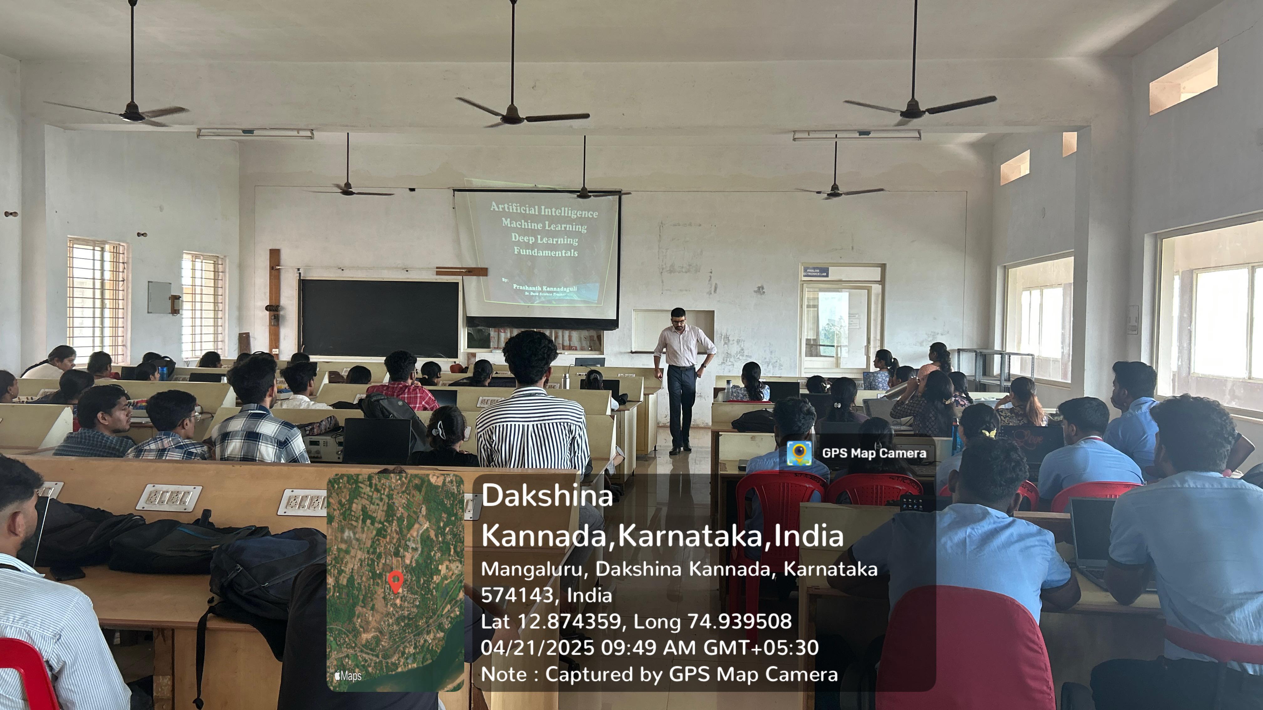 GenAIvation 2025: Intelligence Innovation – From Models to Meaningful Manuscripts The Departments of Information Science & Engineering (ISE) and Computer Science & Design (CSD) at Srinivas Institute of Technology jointly organized a transformative 10-day internship bootcamp titled "GenAIvation 2025: Intelligence Innovation – From Models to Meaningful Manuscripts" from 21st April to 6th May 2025. Held at the ISE Lab, this intensive program was led by Mr. Prashanth Kannadaguli from Dharani Academy, Bengaluru, who served as the resource person and mentor throughout the session. The bootcamp focused on cutting-edge domains such as Machine Learning, Deep Learning, and Generative AI, equipping students with both theoretical foundations and hands-on experience through expert-guided workshops, live projects, and real-time problem-solving exercises. On Day 1, the session began with building a solid foundation in Python programming, where participants were introduced to key programming concepts including syntax, conditional statements, loops, functions, strings, and data structures. The session also included setting up the Python environment for deep learning, preparing students for upcoming advanced topics. The interactive session ensured that every participant developed the essential coding skills necessary to work with AI and ML frameworks effectively. The event received enthusiastic support from the institution's leadership. Dr. Shrinivasa Mayya D, Principal of Srinivas Institute of Technology, commended the initiative and highlighted the critical role of such internships in preparing students to meet industry expectations. Dr. Praveen Shenoy, IIC Coordinator, ensured the event was in alignment with the IIC's mission to promote innovation, entrepreneurship, and practical learning among students. Prof. Sudarshan K, Head of the ISE Department, provided continuous encouragement and oversight throughout the event's planning and execution. The smooth conduct and high engagement of the program were made possible through the dedicated coordination efforts of Prof. Rakesh Malya, Staff Coordinator from the Department of Electronics and Communication, and Prof. Sowmya, IIC Coordinator and Association Advisor from the Department of ISE. Their meticulous planning ensured that each student had the opportunity to learn, present, and receive valuable feedback on their work.