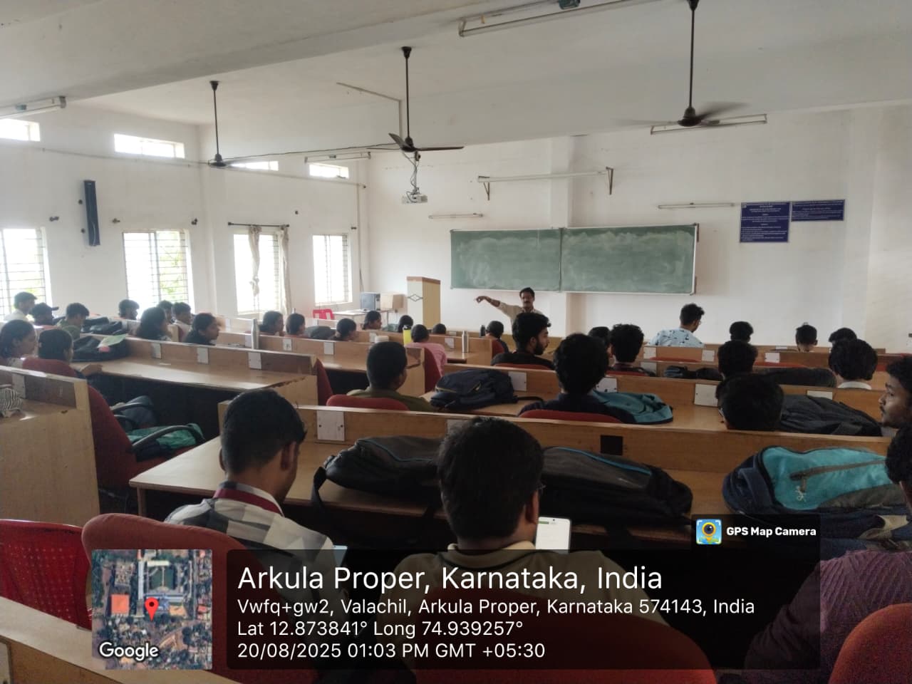 As part of Anti-Ragging Awareness Week the Department of Electronics and Communication Engineering ECE organized an awareness program on 20th August 2025 under the guidance of the Anti-Ragging Cell headed by Dr Anant Kumar Kulakarni Professor and Head Department of Mathematics. For the 5th semester students the session was conducted by Prof Sathish Kumar K while for the 7th semester students it was conducted by Prof Gourish Hegde. Both faculty members addressed the students with clarity and concern emphasizing that ragging in any form physical verbal or psychological will not be tolerated under any circumstances. They also highlighted the legal consequences of ragging as per UGC guidelines and explained the strict disciplinary actions that would be taken against offenders. During the sessions all students submitted their Anti-Ragging Affidavits through the UGC website reaffirming their commitment to a ragging-free campus. The primary objective of the program was to sensitize students to the harmful effects of ragging and to reinforce a culture of respect safety and harmony on campus. The event was attended by students from various semesters of the department along with faculty members making it an impactful and meaningful initiative.