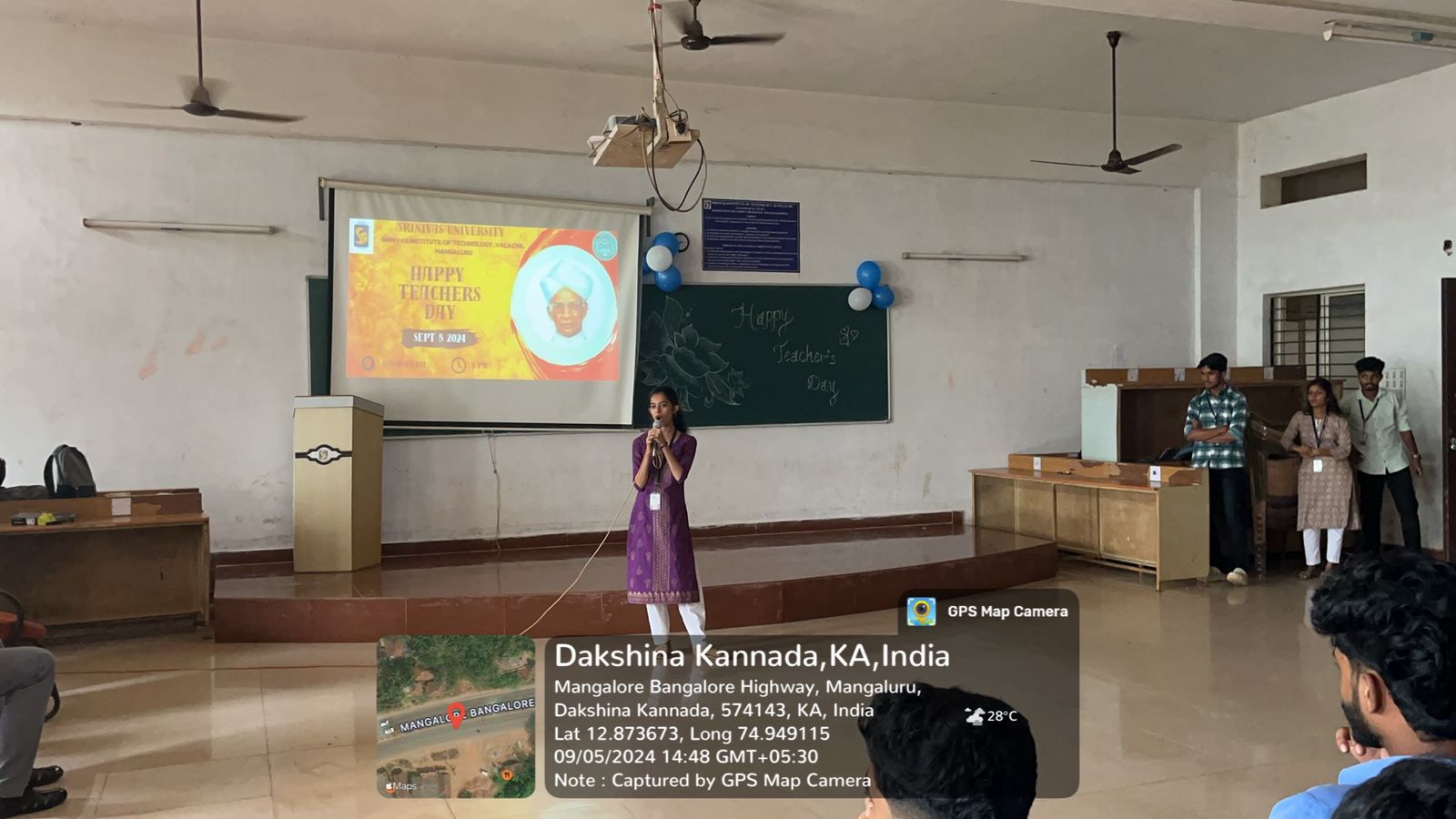 The Teachers' Day event, organized by the ASICS association, was held on September 5, 2024, at 2:30 PM. The event was graced by Prof. Suresha D (HOD, CSE) along with the faculty members from CSE and AIML departments. Students from the 3rd and 5th semesters participated in the celebration, which featured performances and games for the faculty members. Notable highlights included the 'Lucky Teacher' award and feedback from the teachers, who expressed appreciation for the event. Anchored by Miss Pallavi K from 5th semester CSE, the event was a grand success.