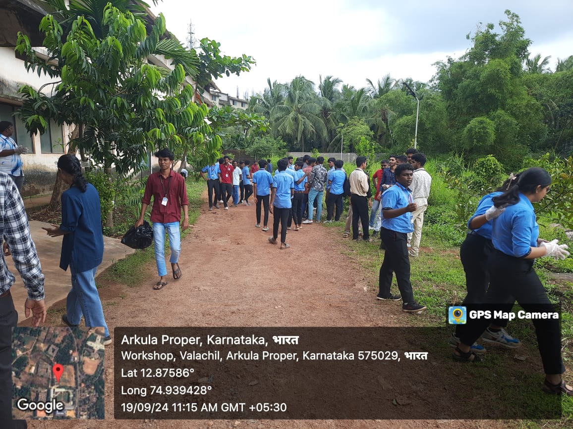 On September 19, 2024, the Marine Students' Association (AIMES) and the NSS unit of Srinivas Institute of Technology, Valachil, collaboratively organized a campus cleaning initiative as part of the 'Swachata Hi Seva Campaign,' aimed at eradicating plastic waste. The initiative was overseen by Dr. Lokesh V, Head of the Marine Engineering Department, and Prof. Sunil Prakash Rodrigues. The program focused on raising awareness of the importance of a clean and sustainable campus environment, with active participation from students and faculty.