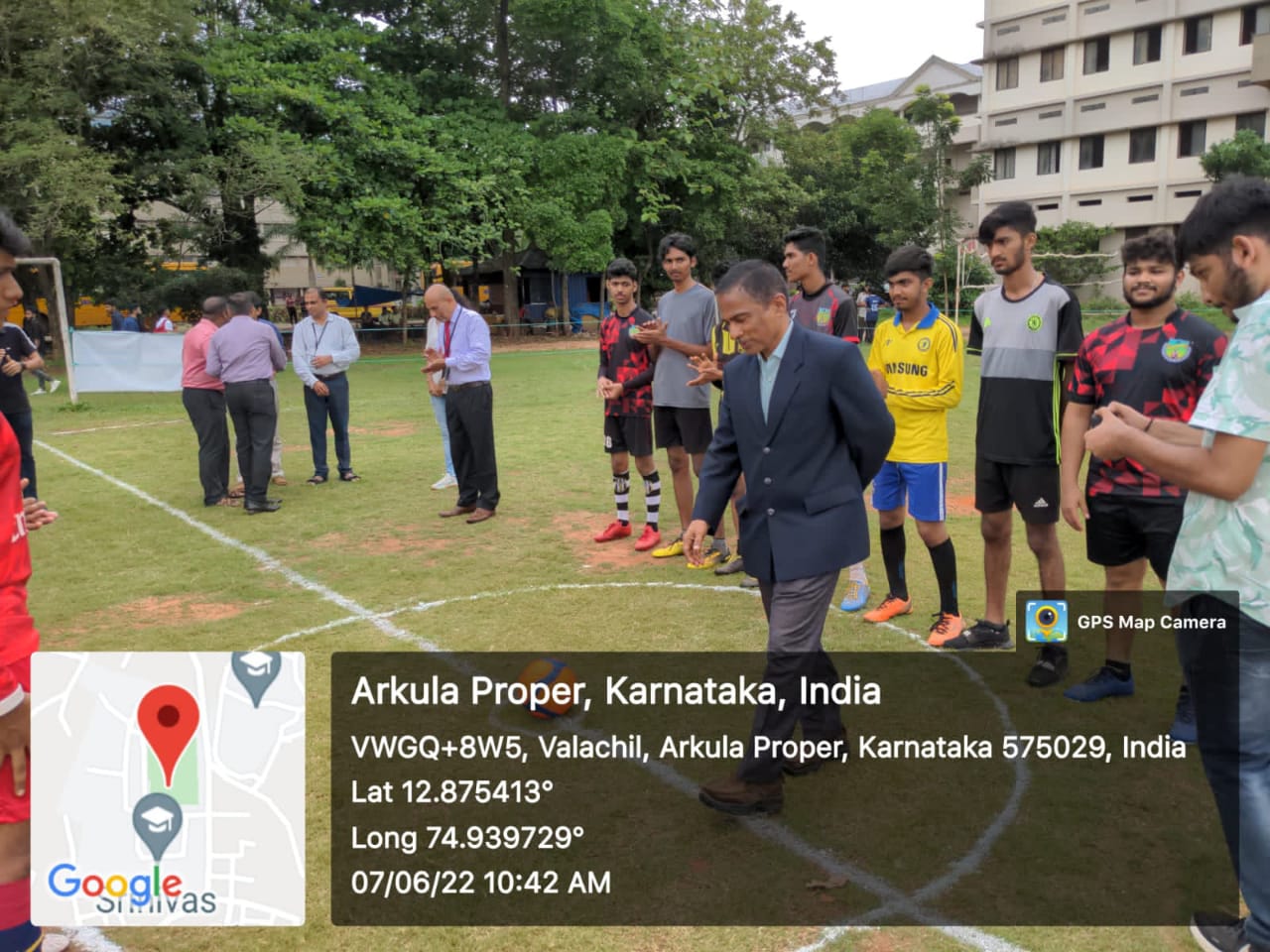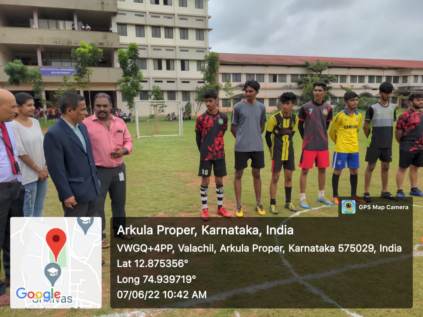 Srinivas Institute of Technology, Valachil, Mangaluru organised the league matches of Mini Futsal a 5v5 mini football tournament on 7th June, 2022 as a part of Envision 2022, a techno-cultural-games fest to be organised on 14th and 15th June 2022. The tournament was Inaugurated by Dr. Shrinivasa Mayya D., Principal, SIT, Mangaluru and wished good luck to all the participants and congratulated the sports student coordinator, Mr. Bopanna and all the student organising committee members. 42 teams registered for the tournament. HoDs of all the Departments, Staff Coordinator Envision 2022, Prof. Dr. Prasad P., and Staff Sports Cordinator, Prof. Tony K. Sebastian were present during the occasion.