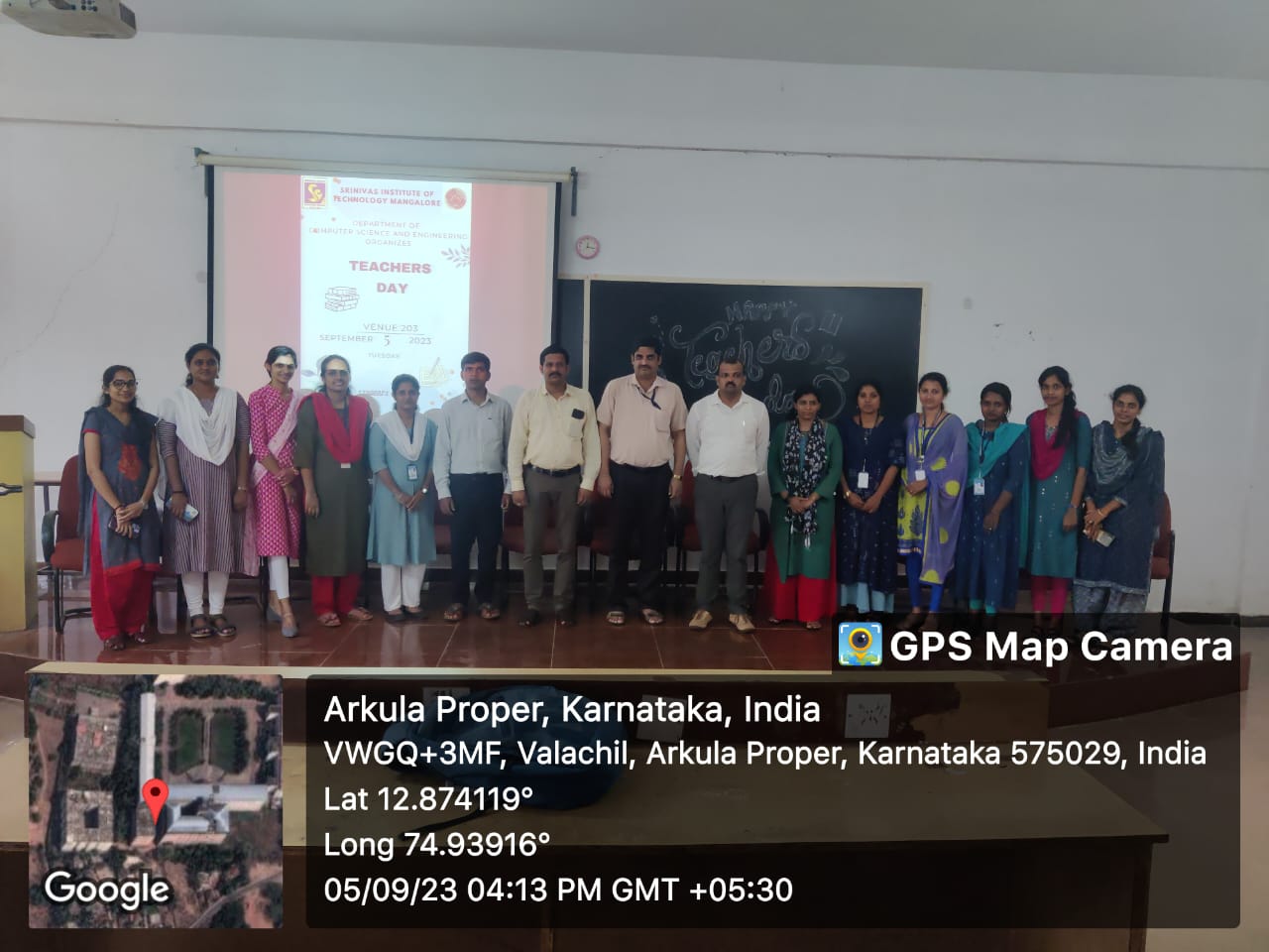 The Department of Computer Science & Engineering student association ASCEE celebrated Teacher’s day on 5th September 2023 at Srinivas Institute of Technology, Mangaluru to commemorate the birth anniversary of Dr. Sarvepalli Radhakrishnan, a staunch believer of education and a well known diplomat, visionary, statesman, scholar ,President of India and above all a perfect Teacher. Prof. Ravishankara K, H.O.D, CS&E Department expressed his views on Teacher’s day and emphasized on devotion, determination and dedication of a teacher in one’s life. He also spoke on the importance of student teacher relationship and positive learning environment for the students.The students expressed their gratitude, affection and love towards the teachers by having an interactive session , felicitation of teachers and entertaining them with various activities. The program was coordinated by Ms. Tejashwini M and Ms. Vishika R Shetty.