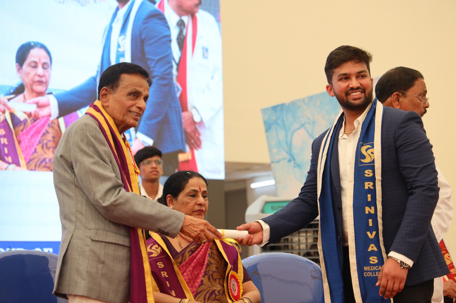 Srinivasa Graduates Soar at Inspiring Graduation ceremony was held at 𝐒𝐫𝐢𝐧𝐢𝐯𝐚𝐬𝐚 𝐔𝐧𝐢𝐯𝐞𝐫𝐬𝐢𝐭𝐲 𝐌𝐮𝐤𝐤𝐚 𝐂𝐚𝐦𝐩𝐮𝐬 Srinivasa Group of Colleges buzzed with pride and anticipation on 𝐒𝐮𝐧𝐝𝐚𝐲 𝐅𝐞𝐛𝐫𝐮𝐚𝐫𝐲 𝟏𝟏𝐭𝐡, 𝟐𝟎𝟐𝟒, 𝐚𝐬 𝟕𝟑𝟗 𝐠𝐫𝐚𝐝𝐮𝐚𝐭𝐞𝐬 marched confidently across the stage to receive their degrees. The air crackled with excitement as esteemed speakers offered insightful words of wisdom and encouragement, each leaving a lasting impression on the young minds embarking on their next chapters. 𝐓𝐡𝐞 𝐜𝐡𝐢𝐞𝐟 𝐠𝐮𝐞𝐬𝐭 𝐟𝐨𝐫 𝐭𝐡𝐞 𝐠𝐫𝐚𝐝𝐮𝐚𝐭𝐢𝐨𝐧 𝐜𝐞𝐫𝐞𝐦𝐨𝐧𝐲 𝐰𝐚𝐬 𝐃𝐫. 𝐒𝐮𝐡𝐚𝐬 𝐆𝐨𝐩𝐢𝐧𝐚𝐭𝐡, Founder, CEO Globals Inc, Co-founder, HappiEMI, YGL, World Economic Forum, Venture Fellow, NYCEDC, Co-Chairman, FICCI, Advisor to Government of India, a cybersecurity visionary, ignited the graduates' spirits with his personal story. He shared his early fascination with the internet that led him to his chosen field, emphasizing the importance of pursuing passions with humility. He reminded them, The past is a thief; if you allow it, it will steal your present and future, urging them to seize their dreams with unwavering determination. 𝐃𝐫. 𝐂𝐀 𝐀. 𝐑𝐚𝐠𝐡𝐚𝐯𝐞𝐧𝐝𝐫𝐚 𝐑𝐚𝐨, Hon'ble Chancellor of Srinivasa University and President of A. Shamarao Foundation Mangalore, in his presidential address , instilled a sense of purpose and responsibility in the graduates. He stressed the importance of lifelong learning, declaring, Study throughout your life, the lessons of life will help you grow personally and professionally. He encouraged them to be valuable assets to the nation, contributing steadily and firmly to its progress.𝐆𝐮𝐞𝐬𝐭 𝐨𝐟 𝐇𝐨𝐧𝐨𝐫 𝐃𝐫. 𝐒𝐫𝐢𝐧𝐢𝐯𝐚𝐬𝐚 𝐑𝐚𝐨, Hon'ble Pro-Chancellor of Srinivasa University, Vice-President of A. Shamar Rao Foundation Mangalore took a bold step, championing the spirit of entrepreneurship. Recognizing the immense potential in the young graduates, he urged them to consider starting their own businesses. Highlighting the government's support for young ventures, he declared, Come forward and be entrepreneurs, igniting a spark of ambition in many hearts.𝐏𝐫𝐨𝐟. 𝐒𝐦𝐭. 𝐀. 𝐌𝐢𝐭𝐫𝐚 𝐒. 𝐑𝐚𝐨 Trustee of the Governing Council of Srinivas University , administered the oath with solemnity, officially marking the graduates' transition into their new roles as qualified professionals.The ceremony wasn't just about speeches, but also about celebrating achievements and fostering connections 𝐃𝐫. 𝐒𝐫𝐢𝐧𝐢𝐯𝐚𝐬𝐚 𝐌𝐚𝐲𝐲𝐚 𝐃., 𝐑𝐞𝐠𝐢𝐬𝐭𝐫𝐚𝐫 (𝐄𝐯𝐚𝐥𝐮𝐚𝐭𝐢𝐨𝐧), warmly welcomed the gathering, setting a welcoming tone.𝐃𝐫. 𝐀𝐣𝐚𝐲 𝐊𝐮𝐦𝐚𝐫, 𝐑𝐞𝐠𝐢𝐬𝐭𝐫𝐚𝐫 (𝐃𝐞𝐯𝐞𝐥𝐨𝐩𝐦𝐞𝐧𝐭), introduced the esteemed chief guest, while 𝐃𝐫. 𝐑𝐚𝐦𝐚𝐤𝐫𝐢𝐬𝐡𝐧𝐚 𝐒𝐡𝐚𝐛𝐚𝐫𝐚𝐲𝐚, 𝐏𝐫𝐢𝐧𝐜𝐢𝐩𝐚𝐥 𝐨𝐟 𝐒𝐫𝐢𝐧𝐢𝐯𝐚𝐬𝐚 𝐂𝐨𝐥𝐥𝐞𝐠𝐞 𝐨𝐟 𝐏𝐡𝐚𝐫𝐦𝐚𝐜𝐲, expressed heartfelt gratitude with a vote of thanks. 𝐀𝐝𝐝𝐢𝐧𝐠 𝐭𝐨 𝐭𝐡𝐞 𝐠𝐫𝐚𝐧𝐝𝐞𝐮𝐫 𝐨𝐟 𝐭𝐡𝐞 𝐨𝐜𝐜𝐚𝐬𝐢𝐨𝐧 𝐰𝐞𝐫𝐞:𝐌𝐫𝐬. 𝐀. 𝐕𝐢𝐣𝐚𝐲𝐚𝐥𝐚𝐤𝐬𝐡𝐦𝐢 𝐑. 𝐑𝐚𝐨, Trustee of the Governing Council, Srinivasa University 𝐃𝐫. 𝐒𝐚𝐭𝐲𝐚𝐧𝐚𝐫𝐚𝐲𝐚𝐧𝐚 𝐑𝐞𝐝𝐝𝐲, Hon'ble Vice-Chancellor of Srinivasa University 𝐃𝐫. 𝐑𝐚𝐦𝐚𝐤𝐫𝐢𝐬𝐡𝐧𝐚 𝐒𝐡𝐚𝐛𝐚𝐫𝐚𝐲𝐚, Principal, Srinivasa College of Pharmacy 𝐃𝐫. 𝐑𝐚𝐦𝐚𝐤𝐫𝐢𝐬𝐡𝐧𝐚 𝐒𝐡𝐚𝐛𝐚𝐫𝐚𝐲𝐚, Dean, Srinivasa Institute of Medical Sciences and Research Center 𝐃𝐫. 𝐏𝐫𝐚𝐝𝐞𝐞𝐩 𝐌., Dean, Srinivasa Institute of Nursing Science 𝐃𝐫. 𝐑𝐚𝐣𝐞𝐬𝐡 𝐒𝐡𝐞𝐤𝐡𝐚𝐫., Dean, Srinivasa College of Physiotherapy and Research Center 𝐃𝐫. 𝐑𝐞𝐬𝐡𝐦𝐚 𝐏𝐚𝐢, Dean, Srinivasa Institute of Dental Sciences 𝐃𝐫. 𝐀𝐧𝐢𝐥 𝐊𝐮𝐦𝐚𝐫, Registrar, Srinivasa University 𝐃𝐫. 𝐒𝐫𝐢𝐧𝐢𝐯𝐚𝐬𝐚 𝐌𝐚𝐲𝐲𝐚 𝐃., Registrar (Evaluation), Srinivasa University 𝐃𝐫. 𝐀𝐣𝐚𝐲 𝐊𝐮𝐦𝐚𝐫, Registrar (Development), Srinivasa University 𝐀𝐝𝐝𝐢𝐭𝐢𝐨𝐧𝐚𝐥𝐥𝐲, 𝐃𝐞𝐚𝐧𝐬 𝐨𝐟 𝐯𝐚𝐫𝐢𝐨𝐮𝐬 𝐨𝐭𝐡𝐞𝐫 𝐒𝐫𝐢𝐧𝐢𝐯𝐚𝐬𝐚 𝐢𝐧𝐬𝐭𝐢𝐭𝐮𝐭𝐢𝐨𝐧𝐬 𝐠𝐫𝐚𝐜𝐞𝐝 𝐭𝐡𝐞 𝐨𝐜𝐜𝐚𝐬𝐢𝐨𝐧 𝐰𝐢𝐭𝐡 𝐭𝐡𝐞𝐢𝐫 𝐩𝐫𝐞𝐬𝐞𝐧𝐜𝐞. As the graduates step into their next chapters, they carry not only their degrees but also a treasure trove of inspiration and valuable lessons gleaned from this momentous occasion. The ceremony served as a launchpad, propelling them forward with the confidence, ambition, and knowledge to make a significant…