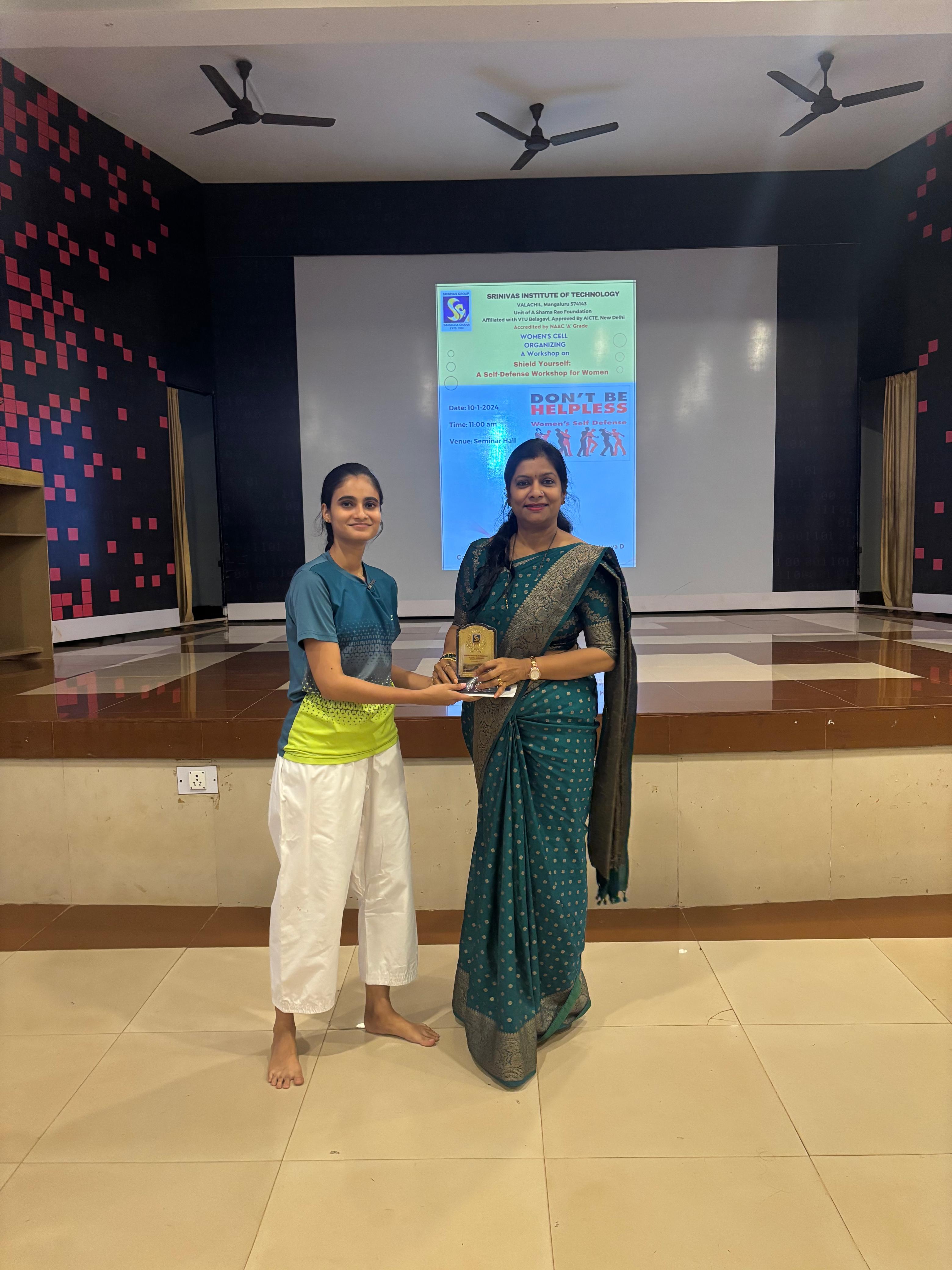 Women Cell at Srinivas Institute of Technology, Valachil, Mangaluru, organized A Self Defence work shop for Women, Shield yourself on 10-1-2025 to Female Students of SIT . The resource person was Nayana, Karate Trainer and Black Belt holder. Around 100 students took the benefit of the Workshop.