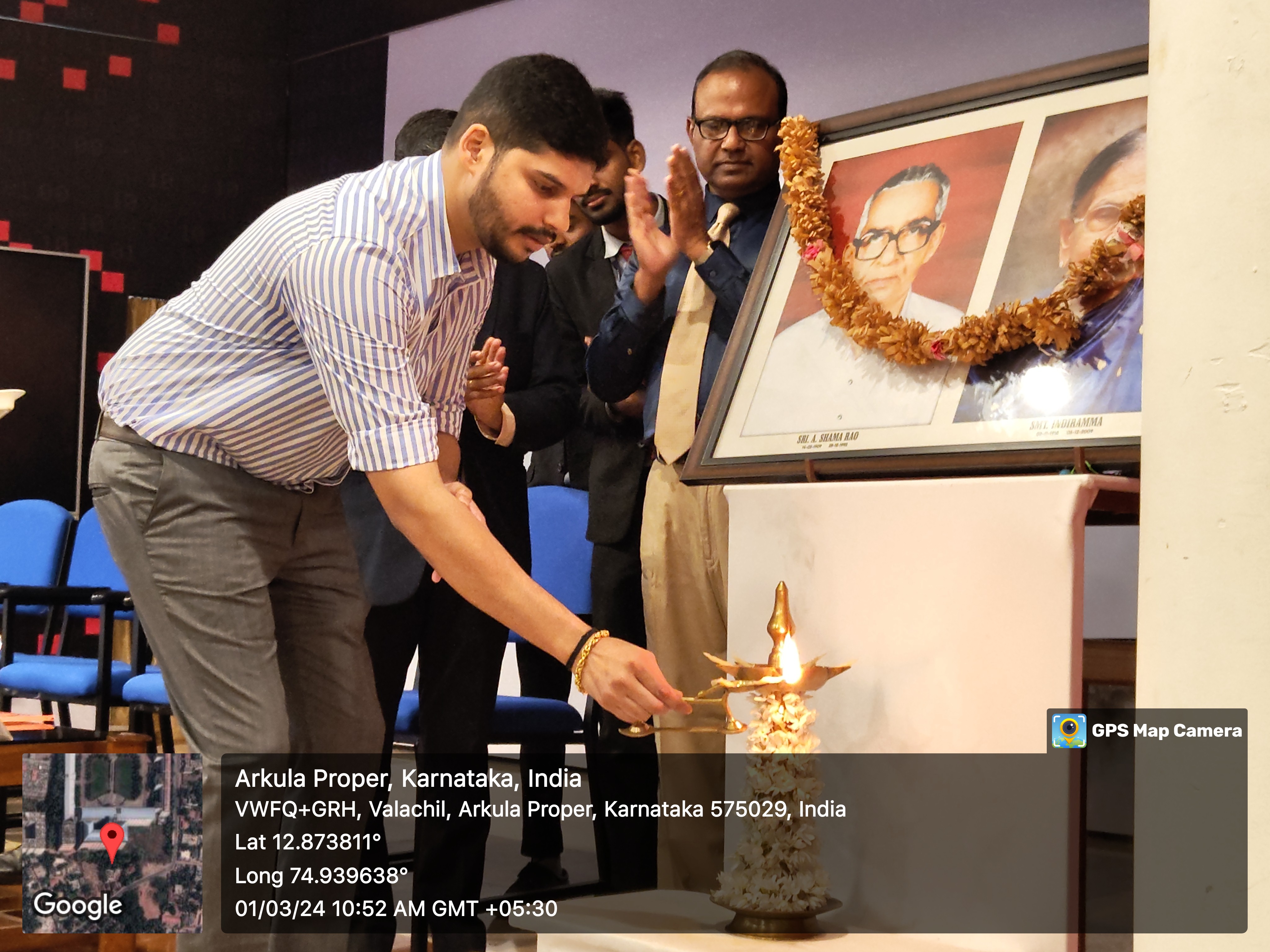Srinivas Institute of Technology’s MBA students association “VOLMAS” was inaugurated on 01.03.2024. Mr.Karthik Shetty, CEO, Sri Ganesh Shipping Agency, Mangalore was the chief guest on the occasion. Speaking on the occasion he emphasized on the importance of such association as well as about the leadership skills that every management student should possess and he also advised students on how to start new venture and how to be a successful entrepreneur. Dr.Shankar K S, Head of Mechanical Department and President of the function, congratulated the association members for forming the association and for adding the new activities, he said more activities should be conducted under the association for the development of students; He also emphasized the importance of various management skills and also how to deal with the situations. Mr.Ajeya R V President of VOLMAS welcomed the gathering, Mr.Royston Xavier Rodgrigues, introduced the guest to the audience, and office bearers were introduced by staff coordinator of VOLMAS Prof. Steevan Robert Tellis, Ms.Akshatha B, Secretary of VOLMAS read out the action plan for the academic year 2023-24. Mr.Vachan Shetty, President of VOLMAS presented the vote of thanks. Dr.Ajoy S Joseph Head of MBA department was also present on the occasion. Ms. Jensha Lobo and Mr. Chidananda was the master of ceremony of the program.