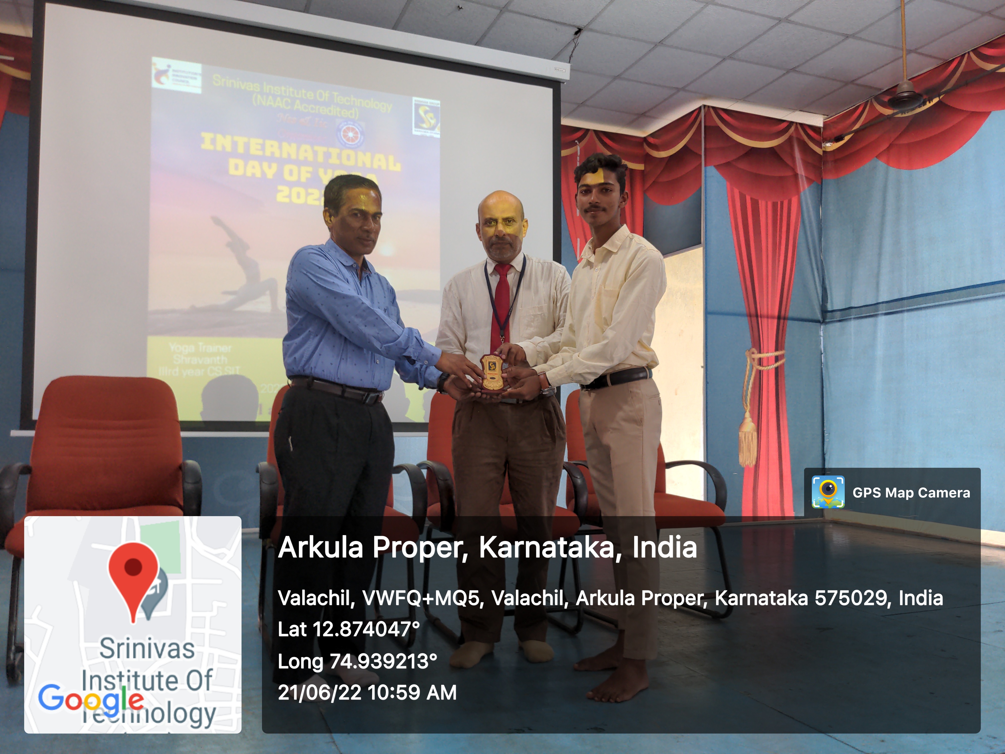 NSS Unit celebrated International Yoga Day on 21/06/22 in association with Institutions Innovation Council. Dr.Hariprakash, of MBA Department welcomed the gathering and introduced the Yoga trainer to the gathering. Yoga trainer Mr.Shravanth k.s of 4th sem computer science and engineering department conducted yoga session to gathering. President of the function Dr.Shrinivasa Mayya D delivered presidential address on “Yoga for humanity” which is the theme of the international yoga day 2022.He urged students to do yoga on daily basis and get fit both physically and mentally which can lead to uplift of human values. He then presented the memento to Mr.Shravanth. Dr.Ramakrishna N Hegde, IIC convener was present during the occasion.NSS officer Mr.P.Rakesh Mallya delivered the vote of thanks.