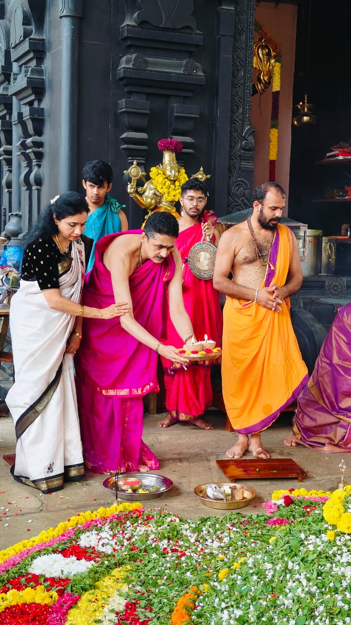 Mangaluru September 13 2025 On the auspicious occasion of Krishna Janmashtami a grand Laksha Namarchane was held at Srinivasa Temple Vaikunta Valachil Mangaluru on Saturday September 13 2025 with great devotion and spiritual fervor. The event began early in the morning with Nitya Pooja from 8:45 a.m. to 9:00 a.m. followed by Bhajane from 9:00 a.m. to 10:00 a.m. The sacred Laksha Namarchane to Lord Srinivasa commenced at 10:00 a.m. in the temple premises drawing devotees from far and wide. The rituals concluded with the Maha Mangalarathi and Prasada Vitarane at 12:30 p.m. The pooja and rituals were devoutly performed by Dr CA A Raghavendra Rao & Mrs Vijayalakshmi Rao Dr Srinivas Rao & Mrs Mithra Rao along with family members who offered their heartfelt prayers to Lord Srinivasa. This auspicious event was well organized by Dr Ananth Kumar Kulkarni HoD Department of Mathematics and Dr Sumana V S Cultural Committee Coordinator Srinivas Institute of Technology Mangaluru. The entire team was led under the guidance of Dr Shrinivasa Maya D Principal SIT Mangaluru. Principals of various sister institutions were also present adding grace and significance to the occasion. Devotees participated with utmost faith chanting the divine names and seeking the blessings of the Lord for peace prosperity and well-being. The atmosphere at the temple was filled with devotion music and spiritual energy making the occasion memorable for all present. The temple committee expressed gratitude to all devotees for their enthusiastic participation and extended their blessings to the community.