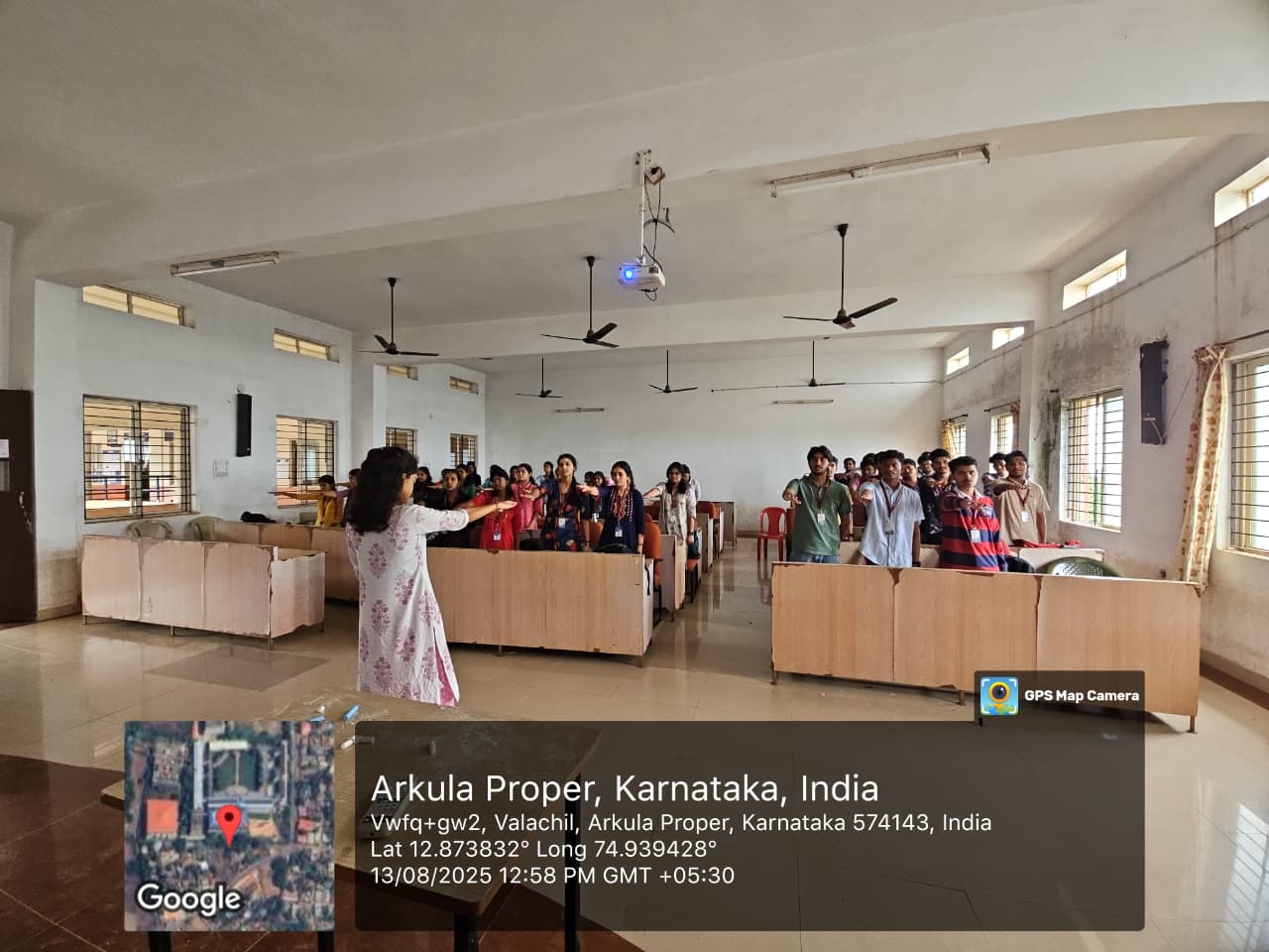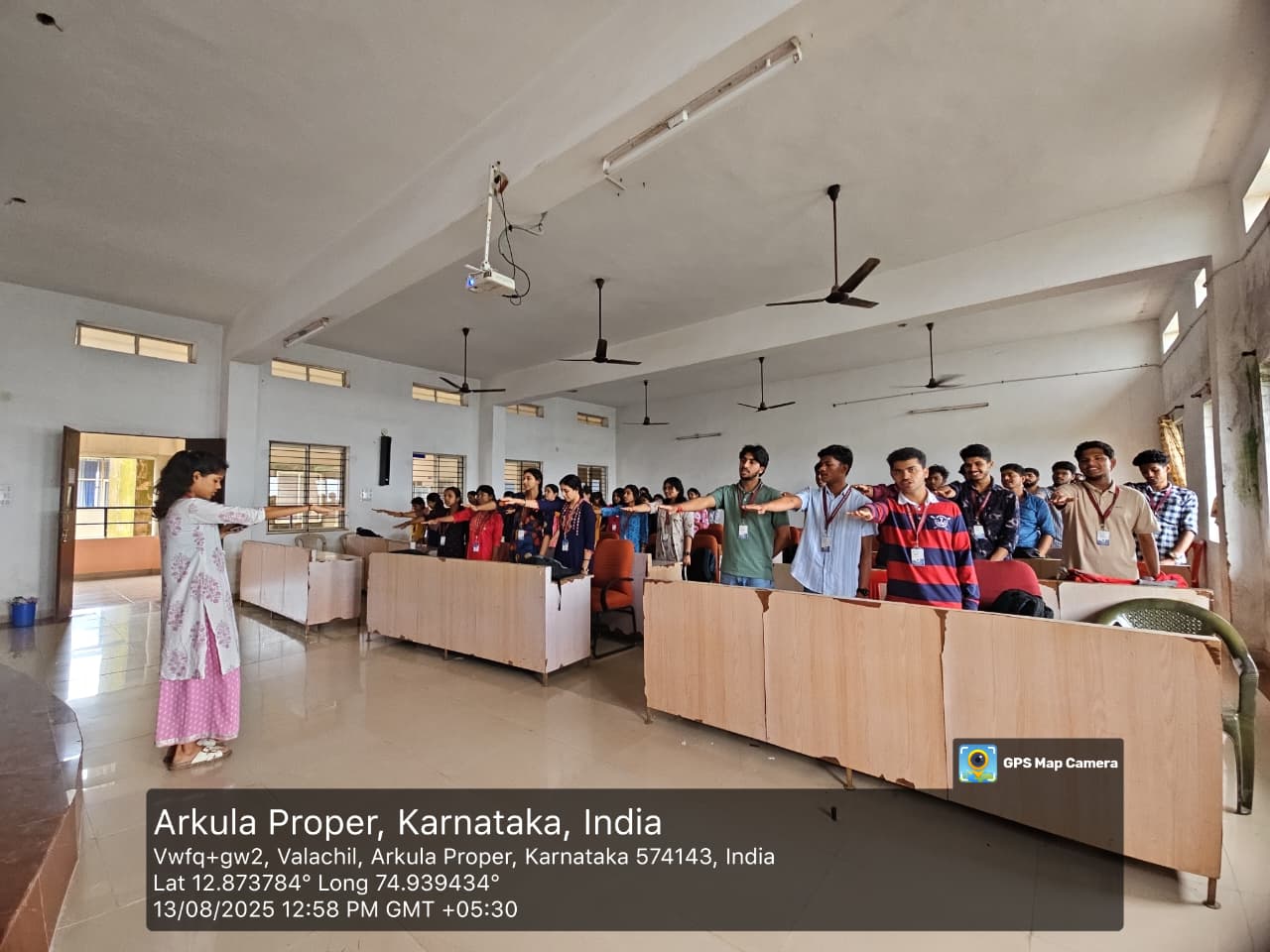 On August 13 2025 under the National Service Scheme NSS the Association of Information Science and Engineering AISE and Computer Science and Design ACODE the Department of ISE and CSD organized an awareness and pledge-taking program as part of the nationwide Nasha Mukth Bharath Abhiyan. The initiative aimed at creating a drug-free India by educating and inspiring the younger generation to lead healthier lives. The program highlighted the theme Say No to Drugs Yes to Life. Students and faculty members actively participated in the campaign which focused on spreading awareness about the harmful effects of drug abuse and the importance of living a balanced responsible lifestyle. A collective pledge was taken by all participants to stay away from drugs and to stand united against substance abuse. The session emphasized that youth are the driving force of the nation and their choices directly influence the growth of society. By promoting discipline responsibility and self-awareness the initiative encouraged students to inspire their peers families and communities to join hands in creating a drug-free environment. Such activities not only educate but also instill a sense of social responsibility among the student community reinforcing the values of unity and integrity. The event was supported by Prof Sudarshan K Head of the Department HOD ISE and CSD and coordinated by Prof Sowmya Prof Archana D Staff Advisor of AISE and ACODE and Prof Rakesh Mallya College NSS Coordinator. Their teamwork and dedication ensured the smooth execution of the event. The awareness and pledge-taking program under Nasha Mukth Bharath Abhiyan proved to be a meaningful step in educating students about the dangers of drug abuse and the importance of leading a healthy life motivating participants to become ambassadors of change spreading the message of a drug-free society within and beyond the campus.