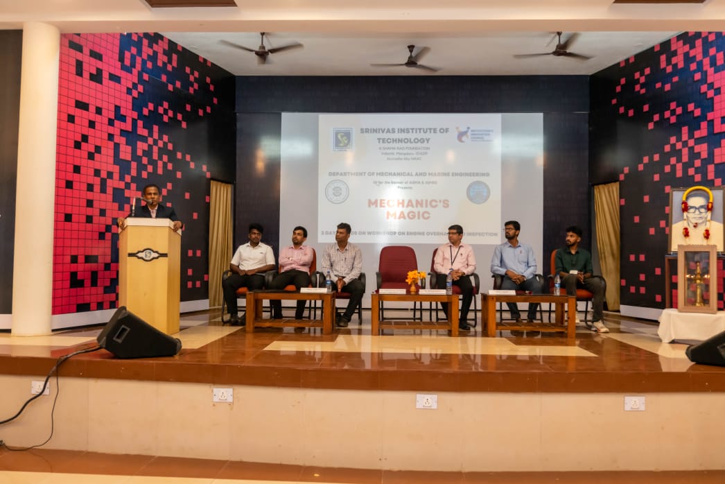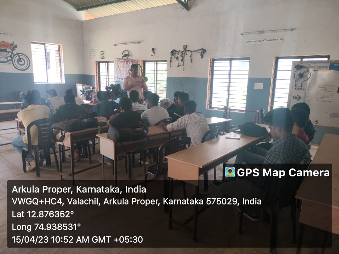 Department of Mechanical Engineering and Marine engineering, jointly organized “Mechanic’s Magic” a Two days hands on workshop on Engine overhaul and inspection under the Banner of ASMA and AIMES, for the final year students of Mechanical and Marine Engineering on 12th and 13th of April 2023.Inauguration of workshop was held on 12th April. Prof. Sathish K G, Faculty coordinator of AIMES gave the overview and motivation for conducting the workshop. Dr. Shankar K S, HoD of Mechanical Engineering congratulated the students for organizing the workshop in his address. He urged the students to make use of such workshops which gives us confidence while working on the tools and helps in handling the vehicles. President of the function and Principal Dr. Shrinivasa Mayya D, in his presidential address he elaborated the necessity of such workshops with some practical examples. In his speech he told-learning the concepts in theory and practical would be different, so he told the students to utilize the workshop, and make use of its outcome in the day to day life. Principal wished the students and congratulated the organizers. Prof. Varun N and Prof. Girish A R, Assistant Professors, Department of Automobile Engineering and Resource Persons for 2 days workshop were present during the programm.Mr. Siddharth U, President of ASMA welcomed the gathering and Mr. Nishanth, vice president of AIMES proposed the vot of thanks. Mr. Pruthviraj was the master of ceremony of the program. Formal function was followed by a presentation on “Automobile engine components and fault identification” by Prof. Varun N and Prof. Girish A R, Assistant Professors, Department of Automobile Engineering.On the next day students had hands on experience on various trouble shooting and fault findings of Automobile engines.