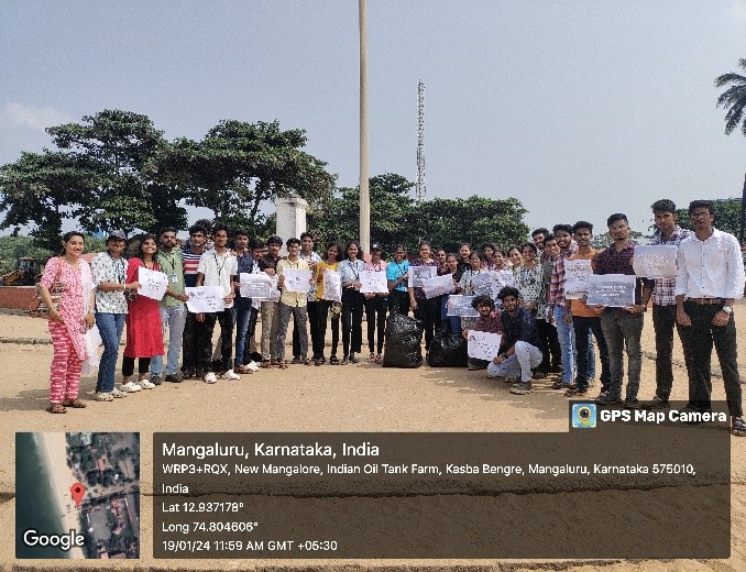 On account of “Swachh Bharath Abhiyan”, the NSS Unit of Srinivas Institute of Technology in association with 3rd and 5th semester students of Artificial Intelligence and Data science, organized a beach cleaning drive in Panambur beach,on 19th January 2024.This program was supported by our beloved Principal Dr. Shrinivasa Mayya D. The event was successfully Initiated and completed with the help of Prof. Nagaraja Hebbar N , Head of the department AI-DS. This event was Coordinated by Prof. Sneha Bose, Department of AI-DS and NSS Department Coordinator and guided by Ms. Bindya and Mr. Kiran.The main aim of conducting this activity was to sensitize the students about cleanliness and to share awareness not to litter the beaches. NSS Volunteers and staffs of college participated in the drive. The waste was collected efficiently and put in disposable packets which were later handed over to the Beach cleaning management. Also the NSS volunteers participated and volunteered to create an awareness using pluck card show to the beach visitors