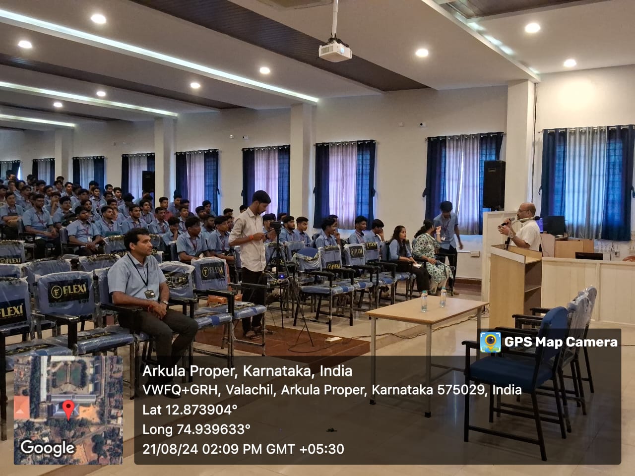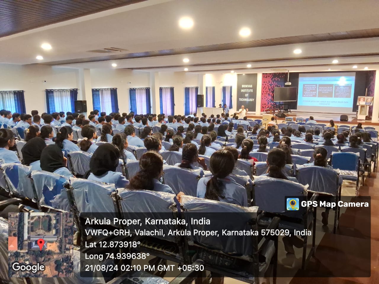 Srinivas Institute of Technology, Valachil, Mangalore, in collaboration with the Institution's Innovation Council (IIC), celebrated World Entrepreneurs Day on August 21, 2024. MsArpita Shetty of 4thsemCSBS Department welcomed the gathering and introduced the Chief guest Mr Sudhir Bhandarkar Bantwal, Management consultant. Mr Sudhir Bhandarkar Bantwaldelivered a talk on the topic Entrepreneurial Mindset – SomeThoughts. The program drew approximately 200 students from various engineering disciplines. As a token of appreciation, Dr. Soorya Krishna K presented a memento toMr Sudhir Bhandarkar Bantwal. In his address, Mr. Sudhir elucidated the concept of entrepreneurship through relevant real-life examples, aiming to inspire the next generation of business leaders. He emphasized critical success factors for entrepreneurs, including perseverance, never compromising on quality, being hands-on, maintaining financial discipline, focusing on value creation, ensuring compliance, and building a strong network. This event provided valuable insights and practical knowledge to aspiring entrepreneurs among the student body.
