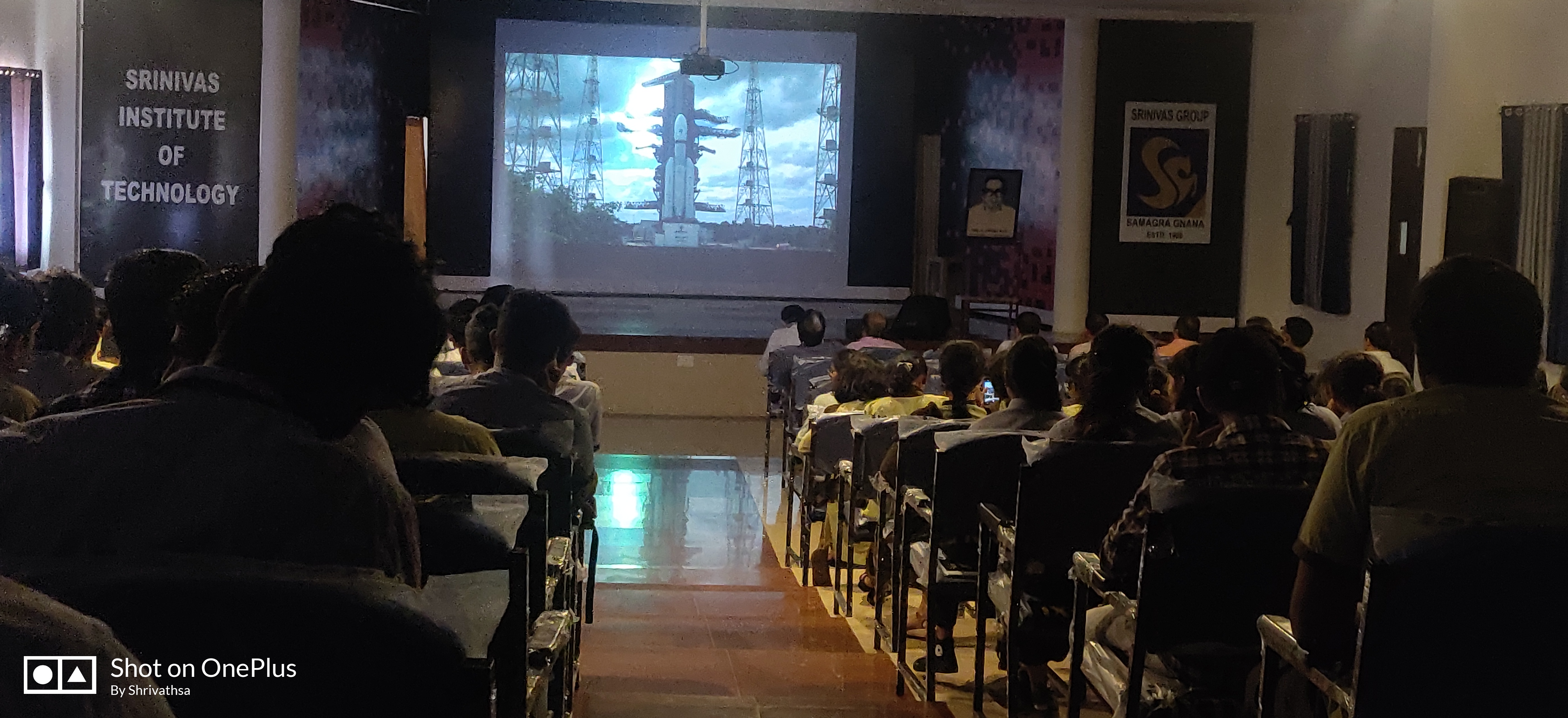 To celebrate the launch of Chandrayaan-3, the Dept. of Aeronautical Engineering organised a live feed of the launch in the A/C seminar hall on 14-07-2023 at 2:00 PM. Students across the branches participated in the event and applauded the success of the scientists at ISRO. Following the event, the students were motivated and inspired to achieve success in their respective fields. The programme was also attended by faculties and HoDs from various departments. Prof. Shrivathsa, Prof. Prakash ST and Prof. Praveen Shenoy coordinated the event. The event was successfully completed with the support of faculties of All the Department, HODs, Principal and Management.