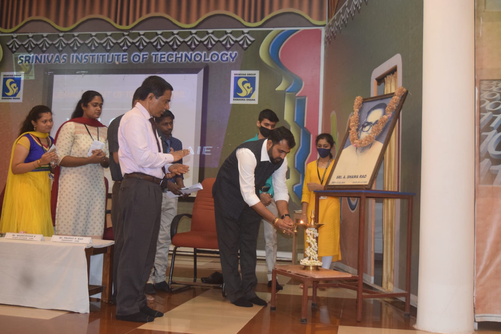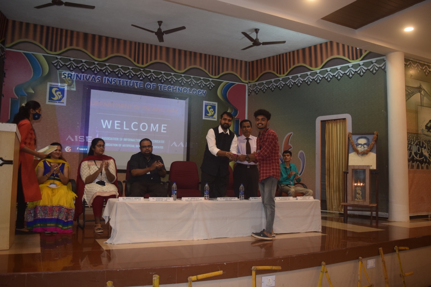 The inaugural function of the student association of Information Science and Engineering department – Association of Information Science and Educatee [AISE] and Association of Artificial intelligence Educatee [AAIE] of Artificial intelligence and Machine Learning Department , of Srinivas Institute of Technology , for the year 2021-2022 was held on 22nd November 2021. Mr. Shyama Soorya M Director Enterprise Business, Sure works Infotech Pvt Ltd., Bangalore was the Chief Guest of the function. Chief Guest, Mr. Shyama Soorya M addressed the gathering and delivered the talk on “Emerging trends in IT Industry” about the competition in the industry, and also on how one has to be updated with all the new technologies coming up each day, apart from academics. Also he guided the students to improve their communication skill ,knowledge in technical and non-technical fields. He also motivates the students to keep their vision of dream high and advised the students not to run behind the money but to run behind in developing their technical skill. The Presidential address was given by Dr. Shrinivasa Mayya D, Principal of the college, who spoke about the importance of continuous learning in an engineering profession and also encouraged the students to actively participate and come up with more innovative ideas for their development. Dr. Anoop B K H.O.D IS & E and AIML urged the participants to enhance their skills by learning trending technologies in IT field.Staff Advisor of AISE and AAIE, Mr. Madhusudhan S., delivered the report on the list of event conducted during the academic year 2020-2021 also on this occasion he introduced the Office Bearers. The gathering was welcomed by Mr. Pranav P Rao., Student President of AISE and AAIE ,Ms. Ashritha J Alva Secretary of association AISE and AAIE introduced the chief guest of the function and Ms. Sonali T Chowta, Event coordinator delivered the vote of thanks. The entire function was hosted by the final year student Ms Sowmithri B.S ISE and Jibin T V.