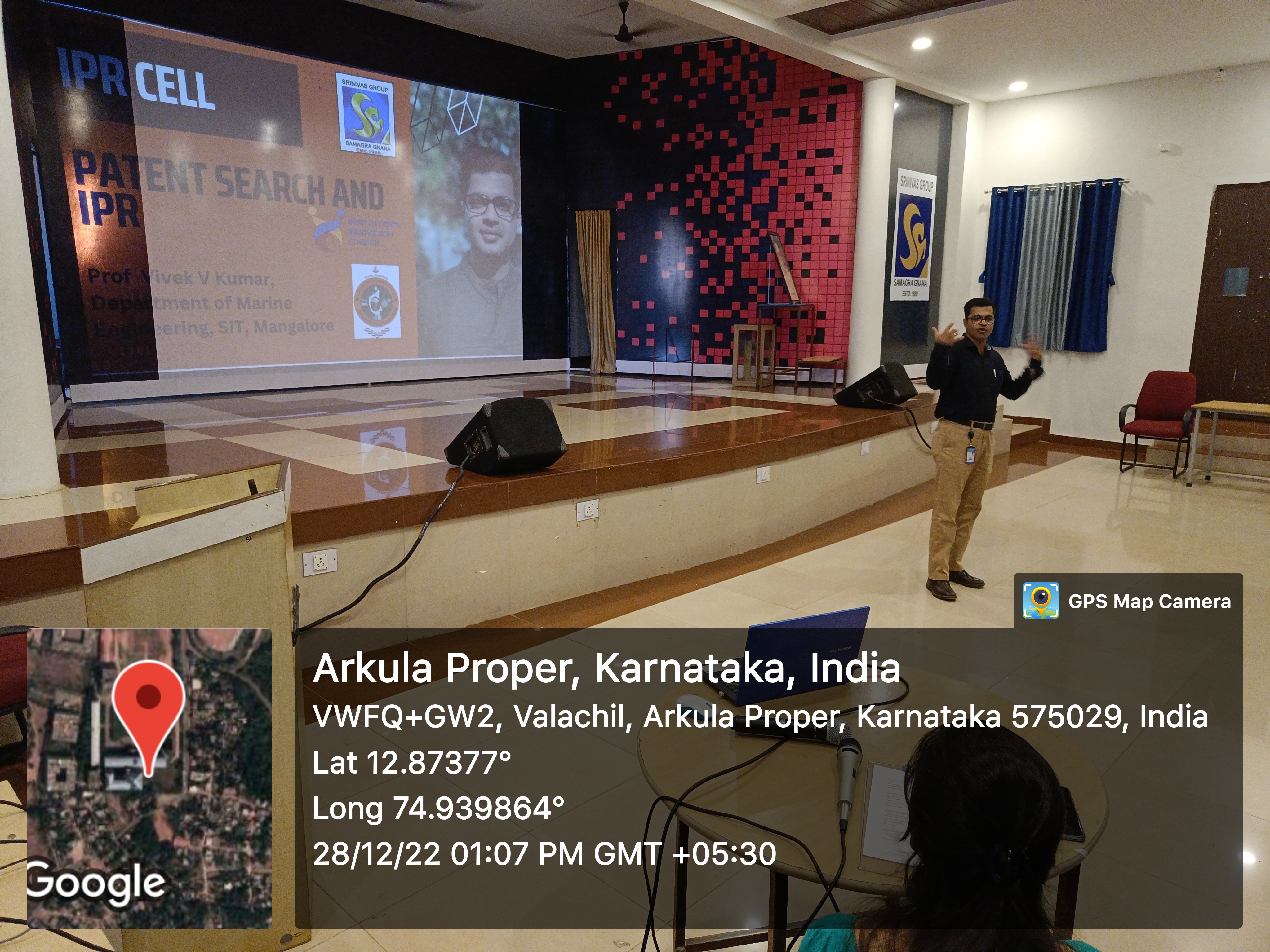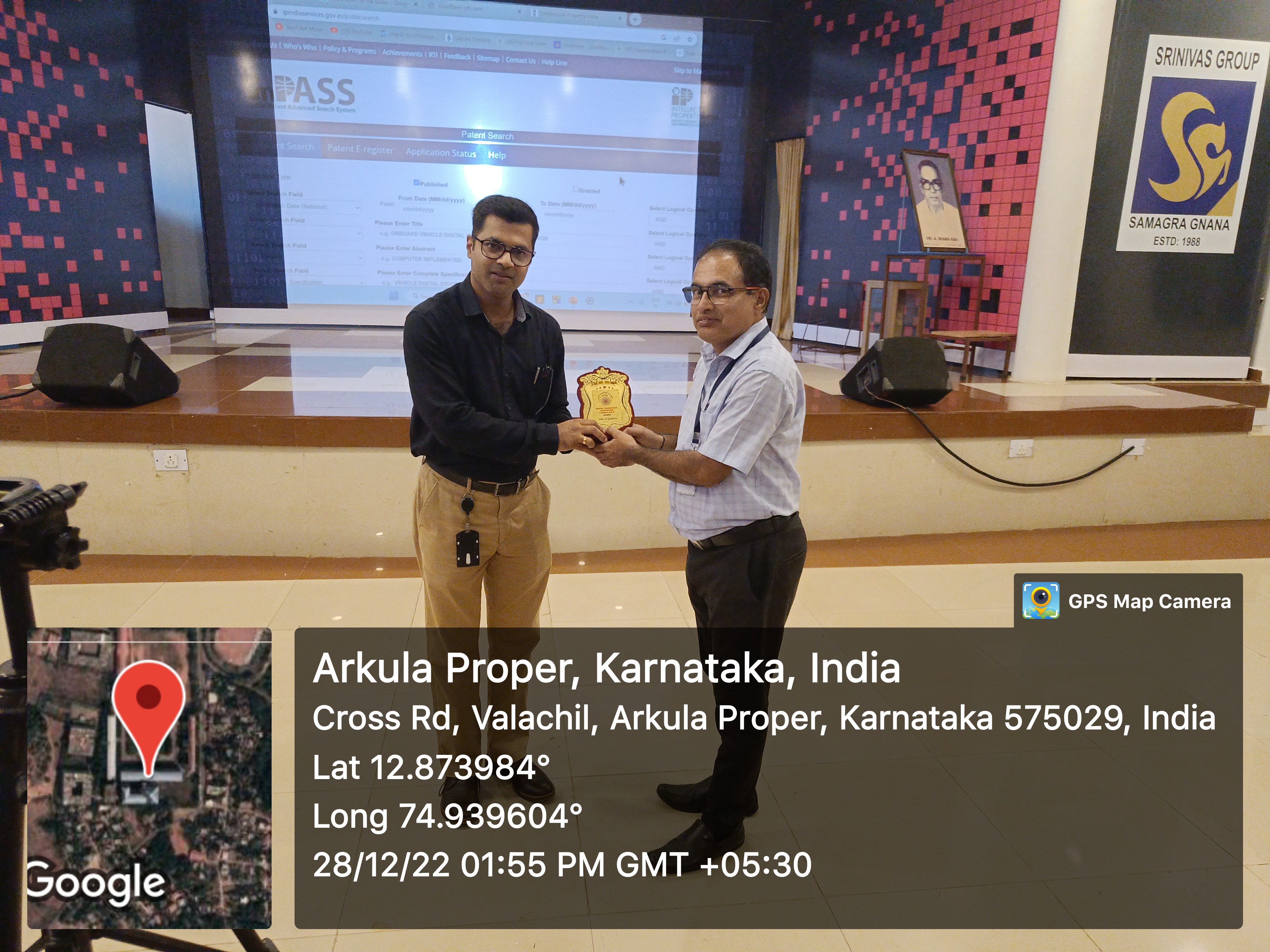A session on 'Patent search and intellectual property rights (IPR)' was held on December 28, 2022, for Information Science and Engineering final- and pre-final-year students at Srinivas Institute of Technology, Mangaluru. The session was organised by the Association of Information Science and Engineering (AISE) in collaboration with the IPR cell and IIC.Prof. Vivek V. Kumar, Assistant Professor, Department of Marine Engineering, Srinivas Institute of Technology, Valachil, Mangaluru, served as the session's resource person. The significance of IPR was discussed with the students, along with its many terms, including copyrights, patents, geographical indications, and trademarks, among others. Other forms of rights are also included, such as trade secret protection and rights against unfair competition. The term 'intellectual property' refers to a variety of creations, including literary and artistic works as well as some discoveries, inventions, words, phrases, symbols, and designs. Following a thorough understanding of the IPR regulations, participants conducted a hands-on search for prior art on their own ideas using Google Patents and the Indian patent database. This program was supported by our beloved principal Dr. Shrinivasa Mayya D. The program was successfully completed with the help of Prof. Sudarshan K, Head of the Department, IS&E, Prof. Nagaraja Hebbar N, Head of the Department, AI-DS. This event is coordinated by Prof. Sowmya, Staff Advisor of AISE.