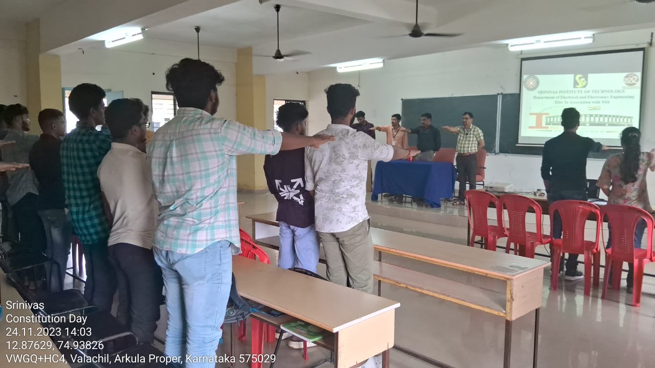 NSS volunteers of each department has celebrated Constitution Day on 25/11/23 in their respective department classrooms. Principal Dr.Shrinivasa Mayya D. addressed student volunteers and reminded them of their constitutional responsibilities.Department NSS coordinators with their respective HOD,s read the preamble of the constitution along with their volunteers.Many students also got the digital certificates for reading the preamble online and attending the quiz.Department coordinators spoke about the Indian constitution and also elaborated on it’s significance as it reinforces civic values, educate citizens about their constitutional rights and promotes a deeper understanding of the democratic principles that guide the nation. Department faculty members were also present during the occasion.
