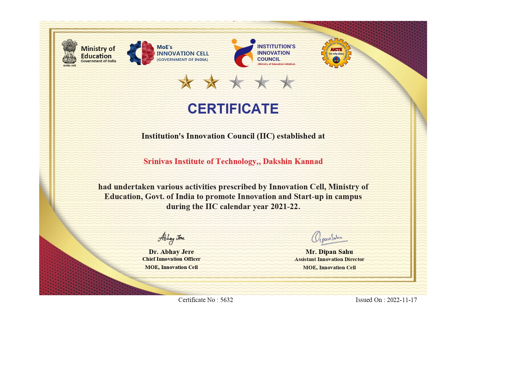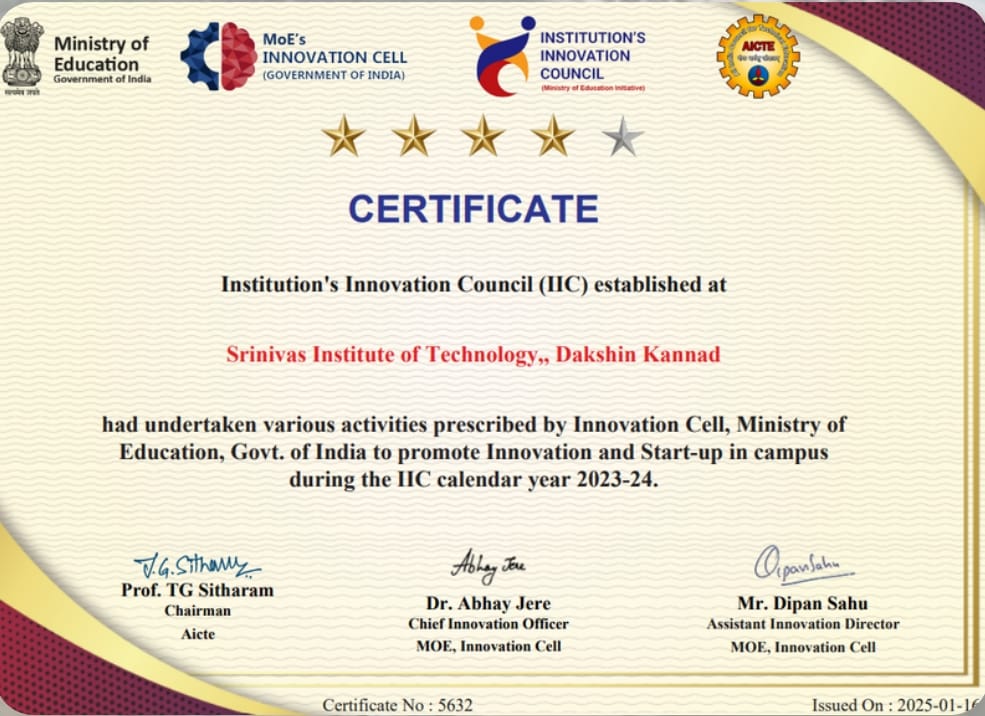 The Institution's Innovation Council (IIC) at Srinivas Institute of Technology (SIT), Mangaluru, was