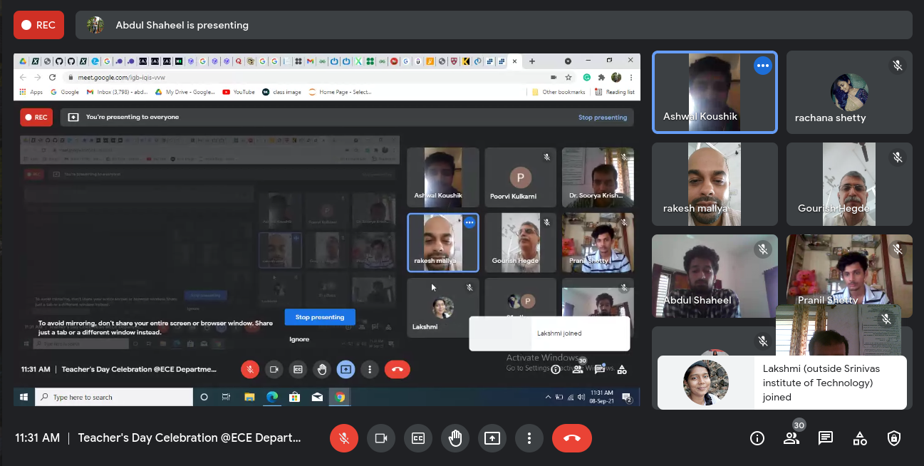STEADY association of SIT ECE Department organised ‘Teacher’s Day’ on 8-9-2021. The program was attended by all the ECE department students and faculties. Students thanked the teachers for their selfless service and influence in their life. A quiz was conducted for the teachers by the students at the end of the program.