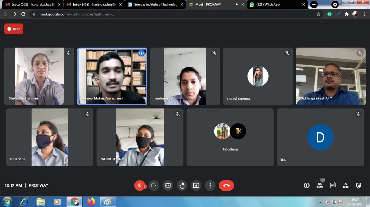 Department of MBA had organised a webinar on PROFWAY- The Highway to Professionalism on 17th September 2021. Mr. James Mohan, Managing Director, Career Villa, Project Research Associate, IIT Delhi, Former PRO - Rajagiri College, Kochi, Radio Jockey, Kerala FM and a proud Alumnus of MBA Department was the resource person.