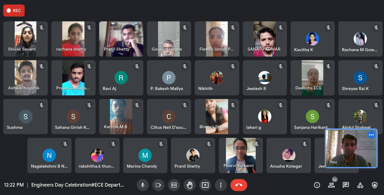 'STEADY' association of SIT ECE Department organised ‘Engineer’s Day’ on 15-9-2021. The program was attended by all the ECE department students and faculties. Students remembered the role played by Dr. M. Visvesvaraya in building the Dams in India and Engineering marvels created in India by other great Engineers. A video was played at the end of the program to pay tribute to all the Engineers.