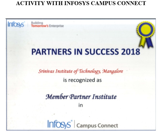 Srinivas Institute of Technology has tie up with Infosys Bangalore in the academic year 2018.