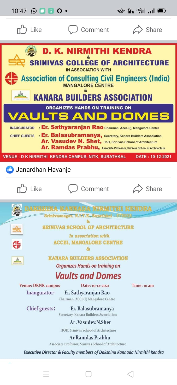 ONE FULL day hands on training program was conducted for Srinivas School of Architecture Students Mangalore. This was in Association with ACCE(I) Mangalore Center and Kanara Builders Association Mangalore on 10-12-2021.